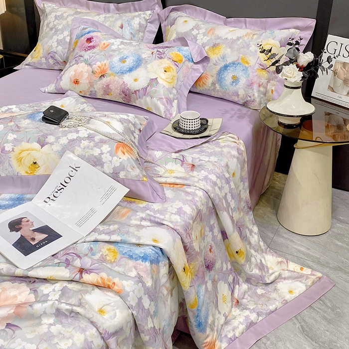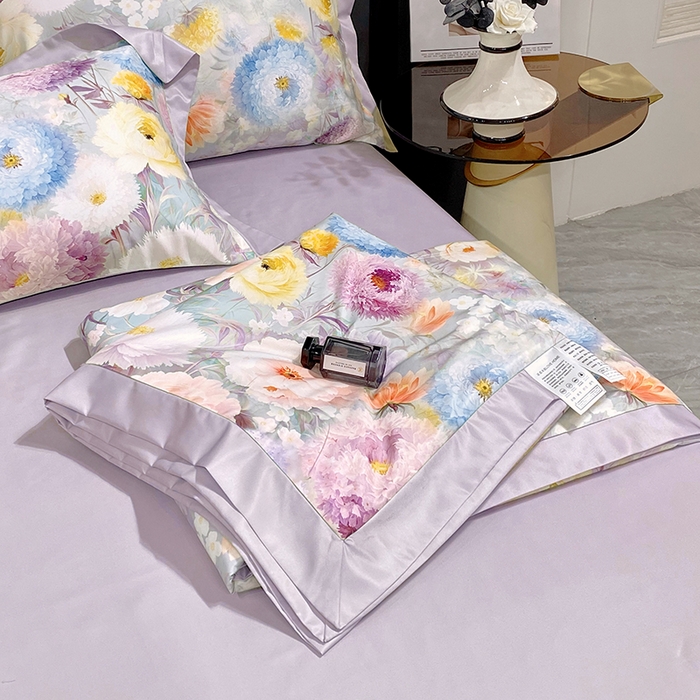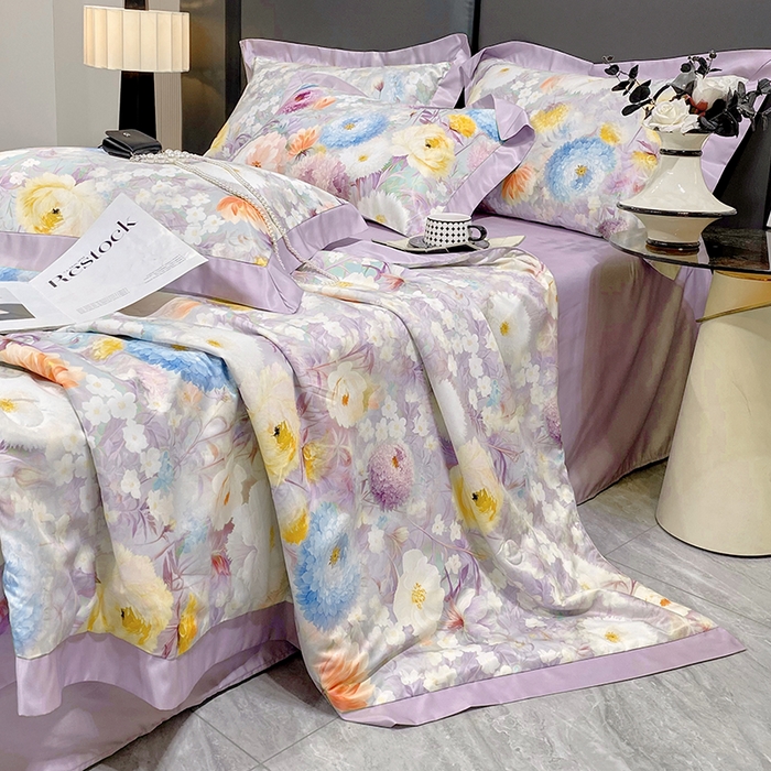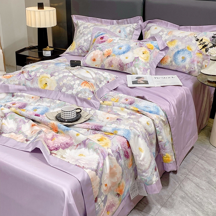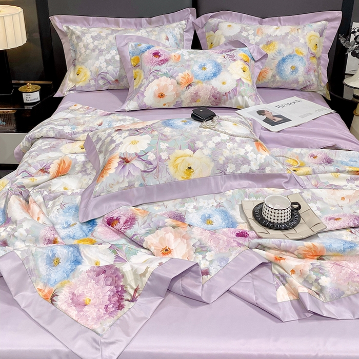久久红 2025新款数码印花凉感冰丝羽丝棉填充夏被四件套 初夏一紫