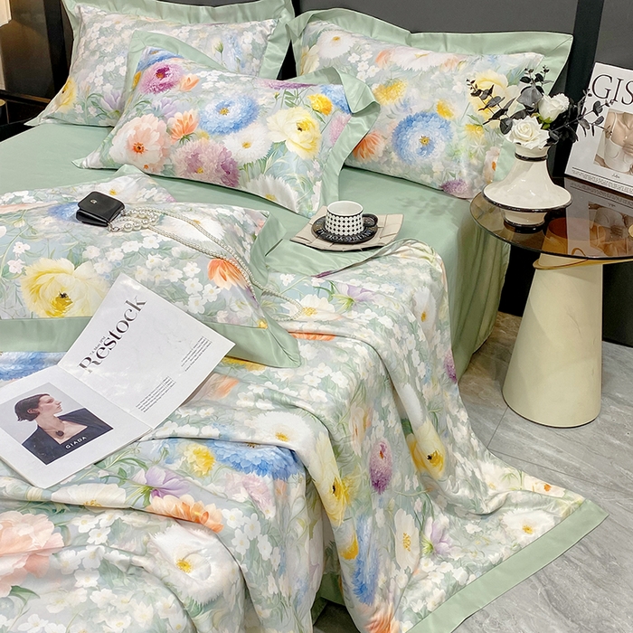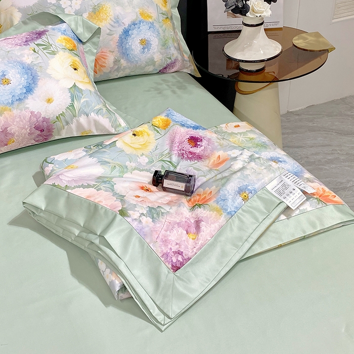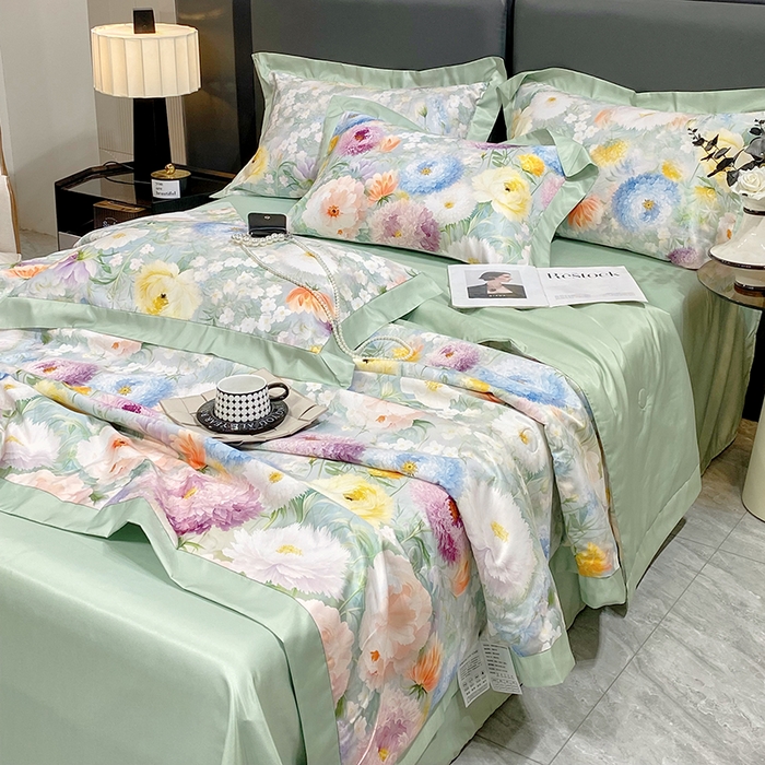 久久红 2025新款数码印花凉感冰丝羽丝棉填充夏被四件套 初夏-绿