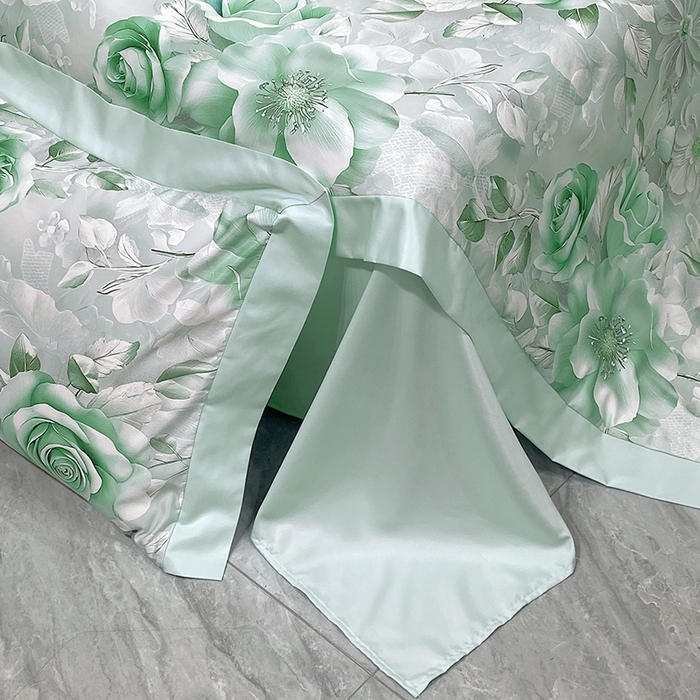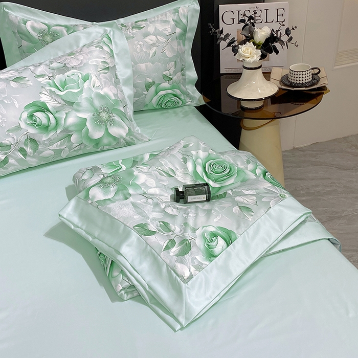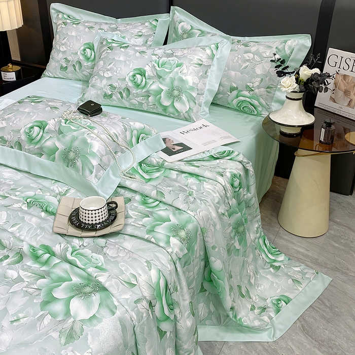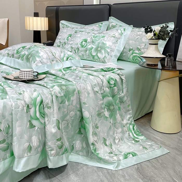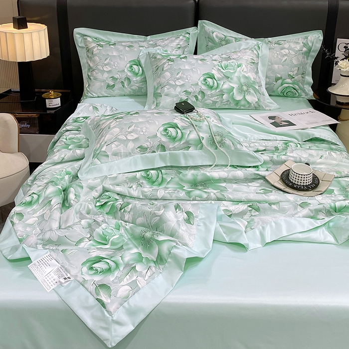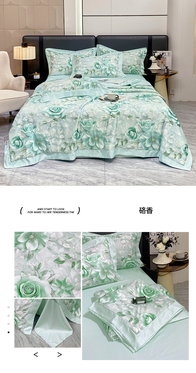 久久红 2025新款数码印花凉感冰丝羽丝棉填充夏被四件套 洛香-清新绿