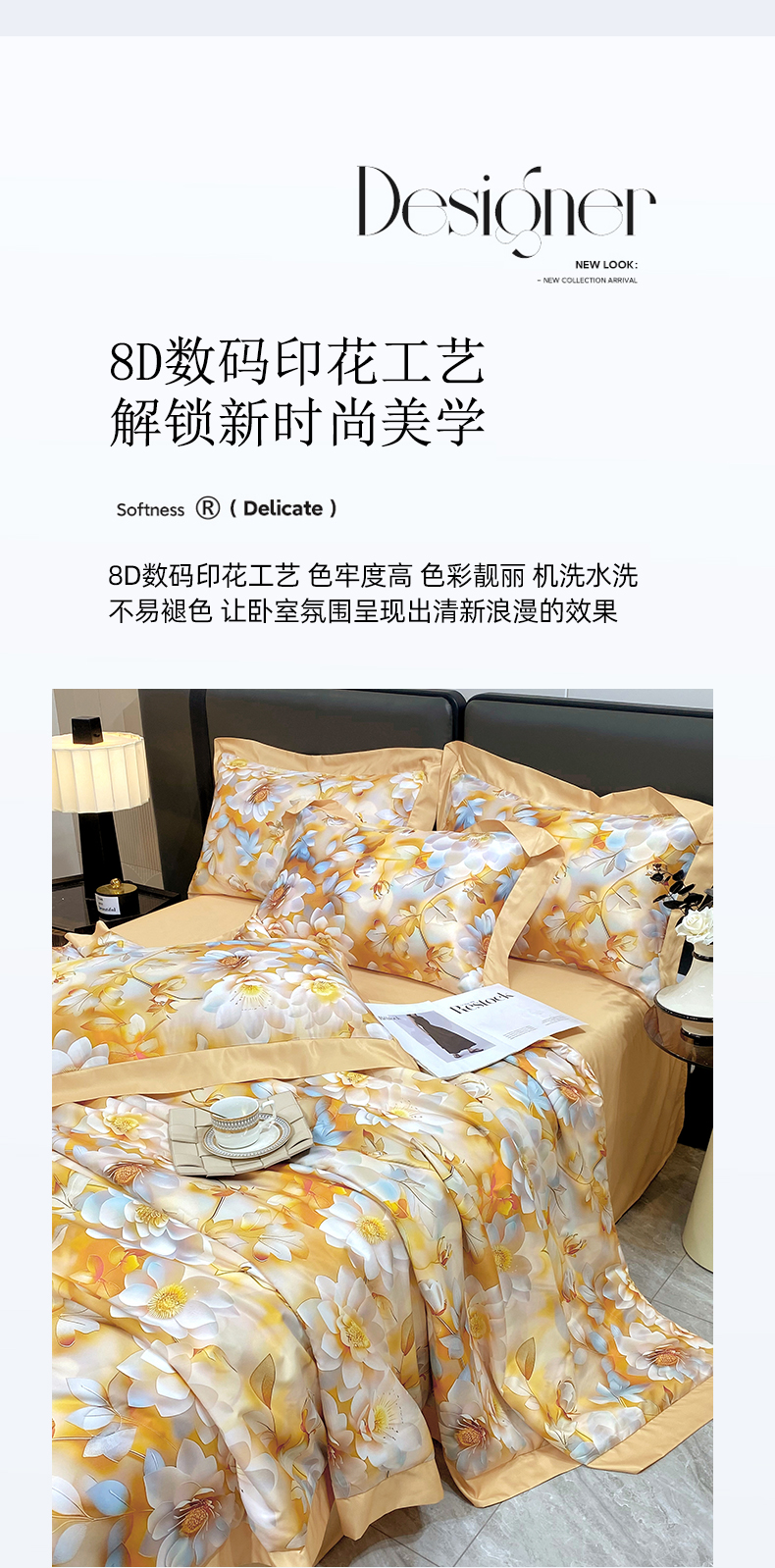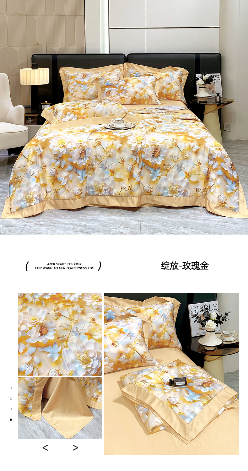 久久红 2025新款数码印花凉感冰丝羽丝棉填充夏被四件套 绽放-玫瑰金