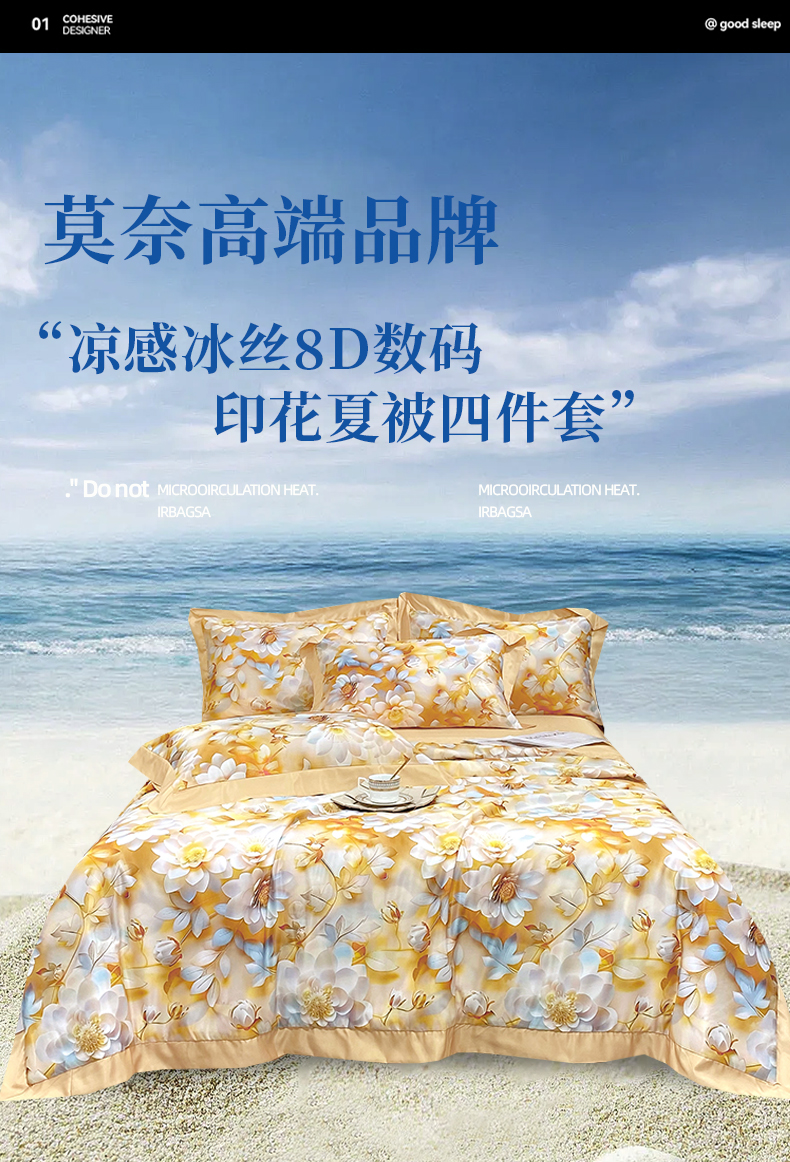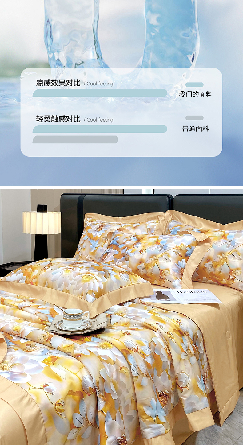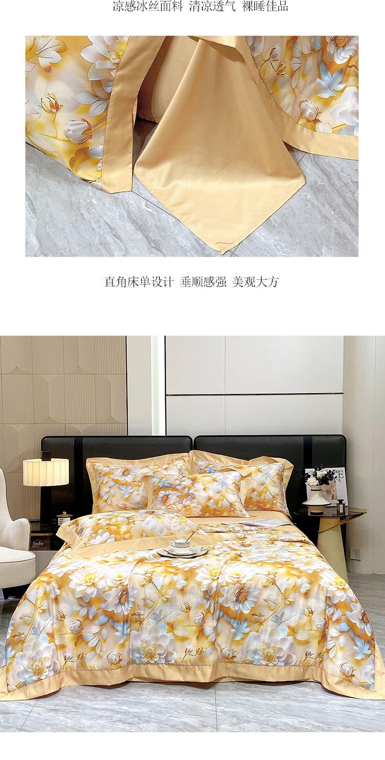 2025新款数码印花凉感冰丝羽丝棉填充夏被四件套