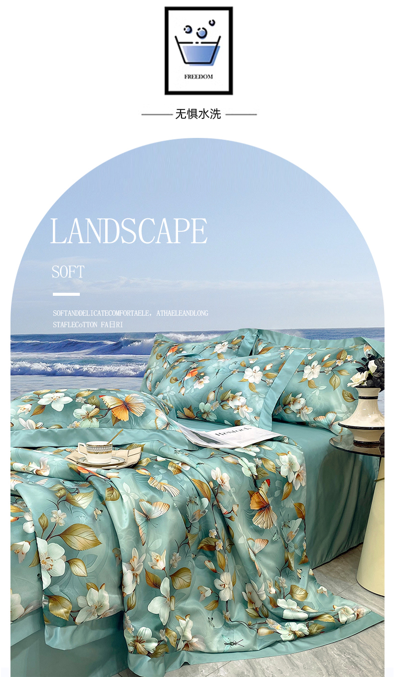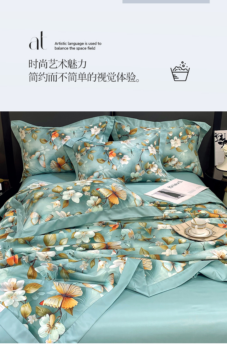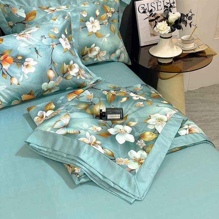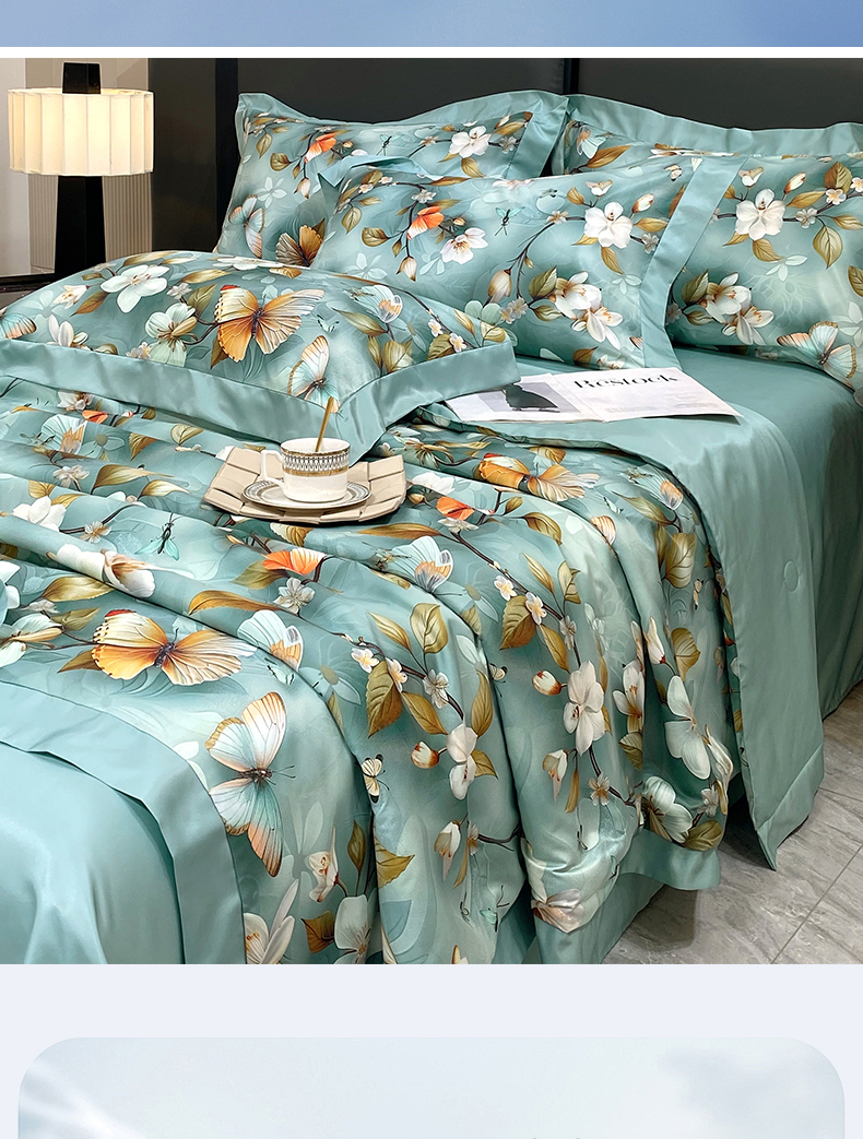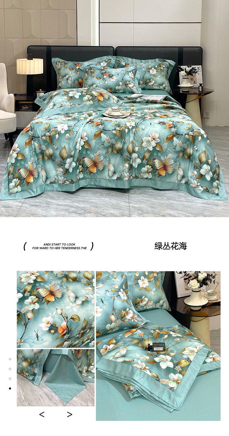 久久红 2025新款数码印花凉感冰丝羽丝棉填充夏被四件套 绿丛花海