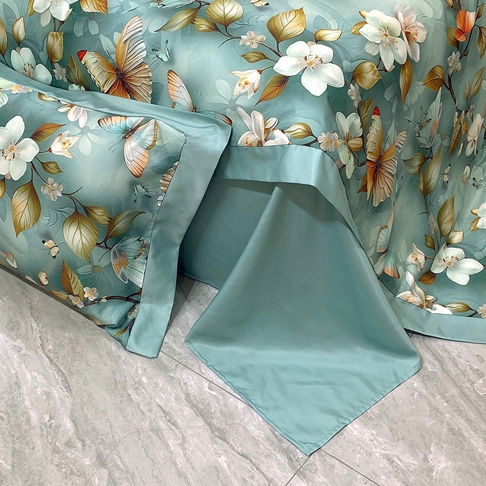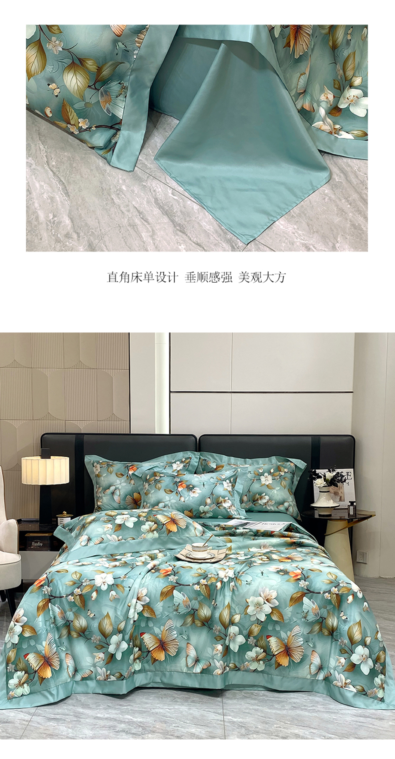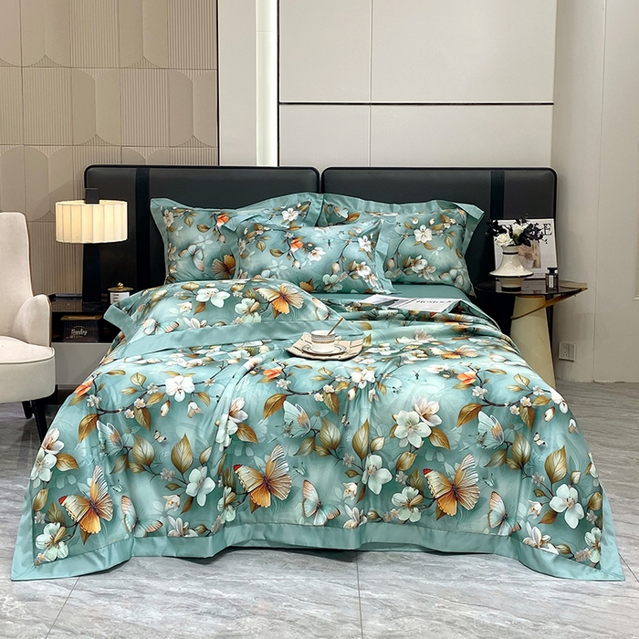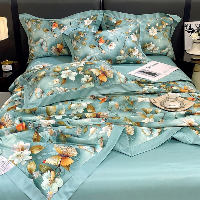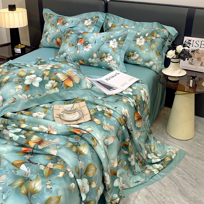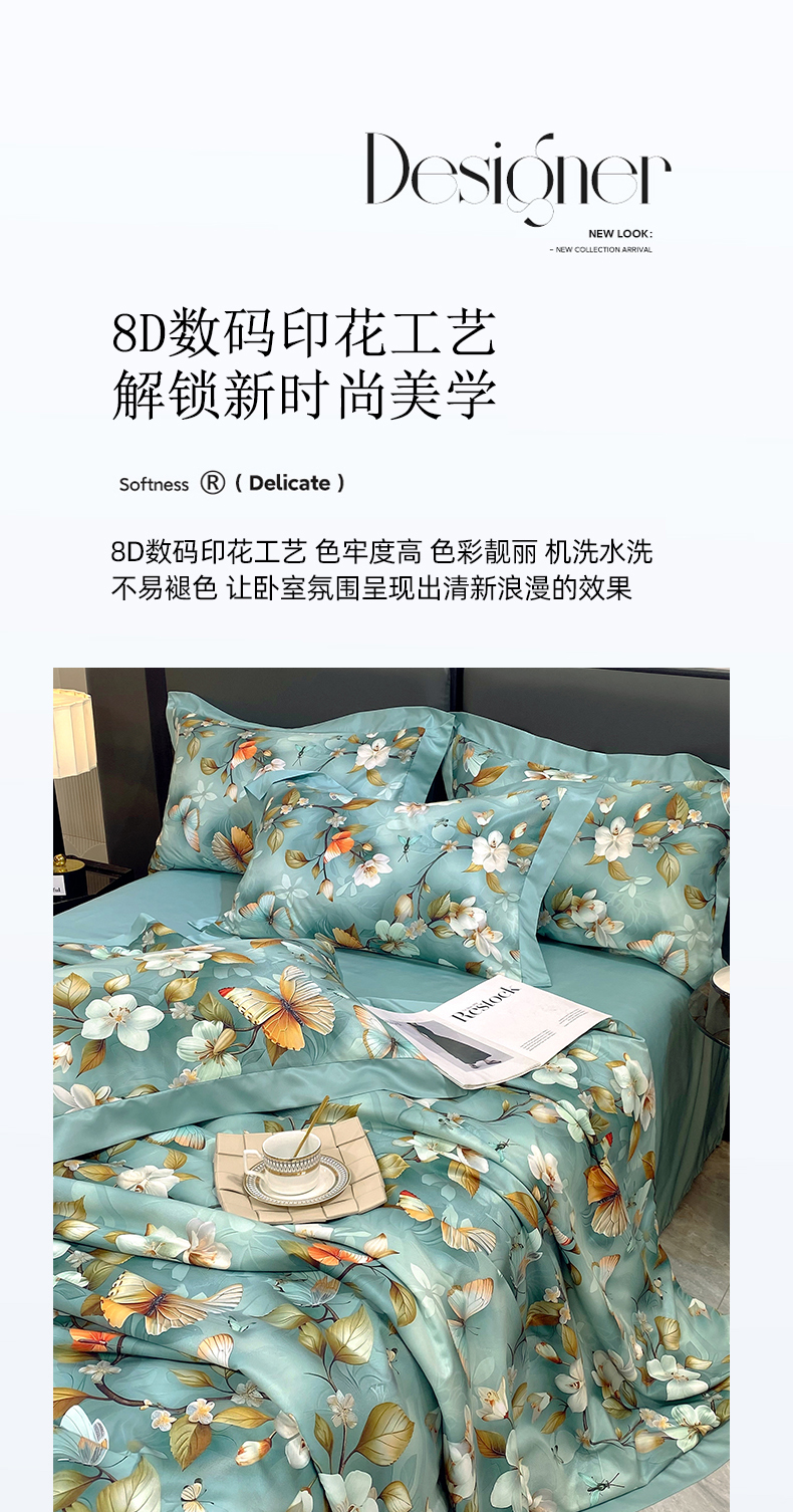 久久红 2025新款数码印花凉感冰丝羽丝棉填充夏被四件套 绿丛花海