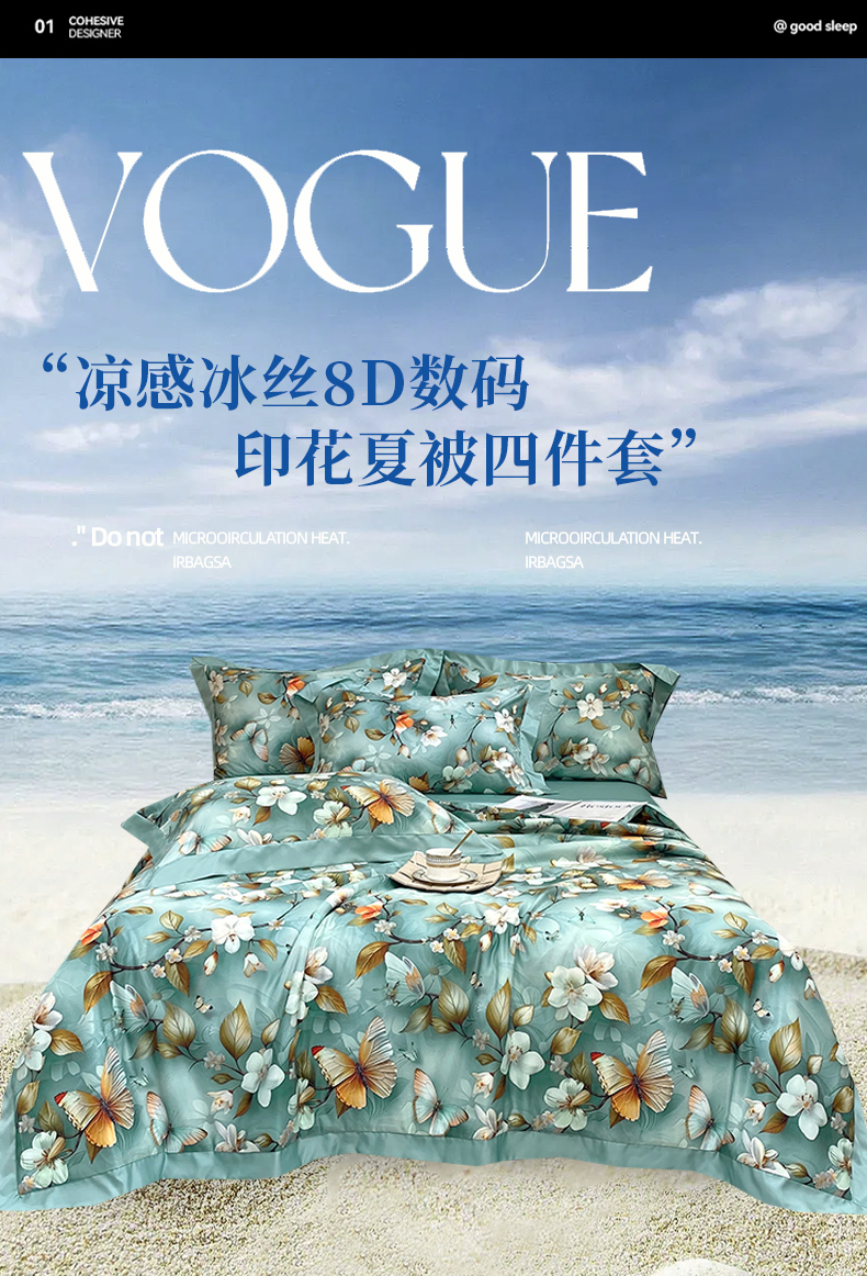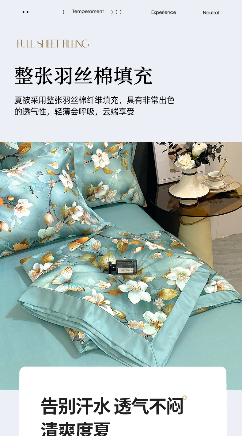 2025新款数码印花凉感冰丝羽丝棉填充夏被四件套