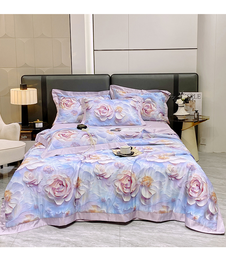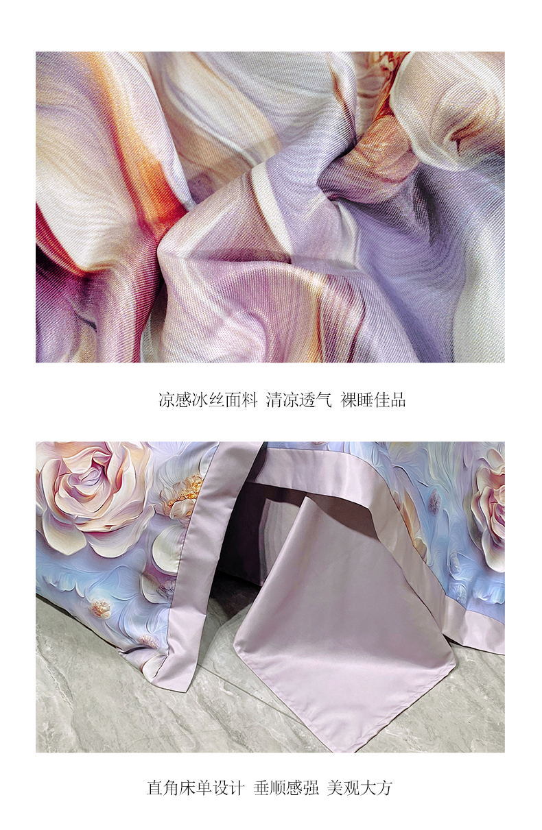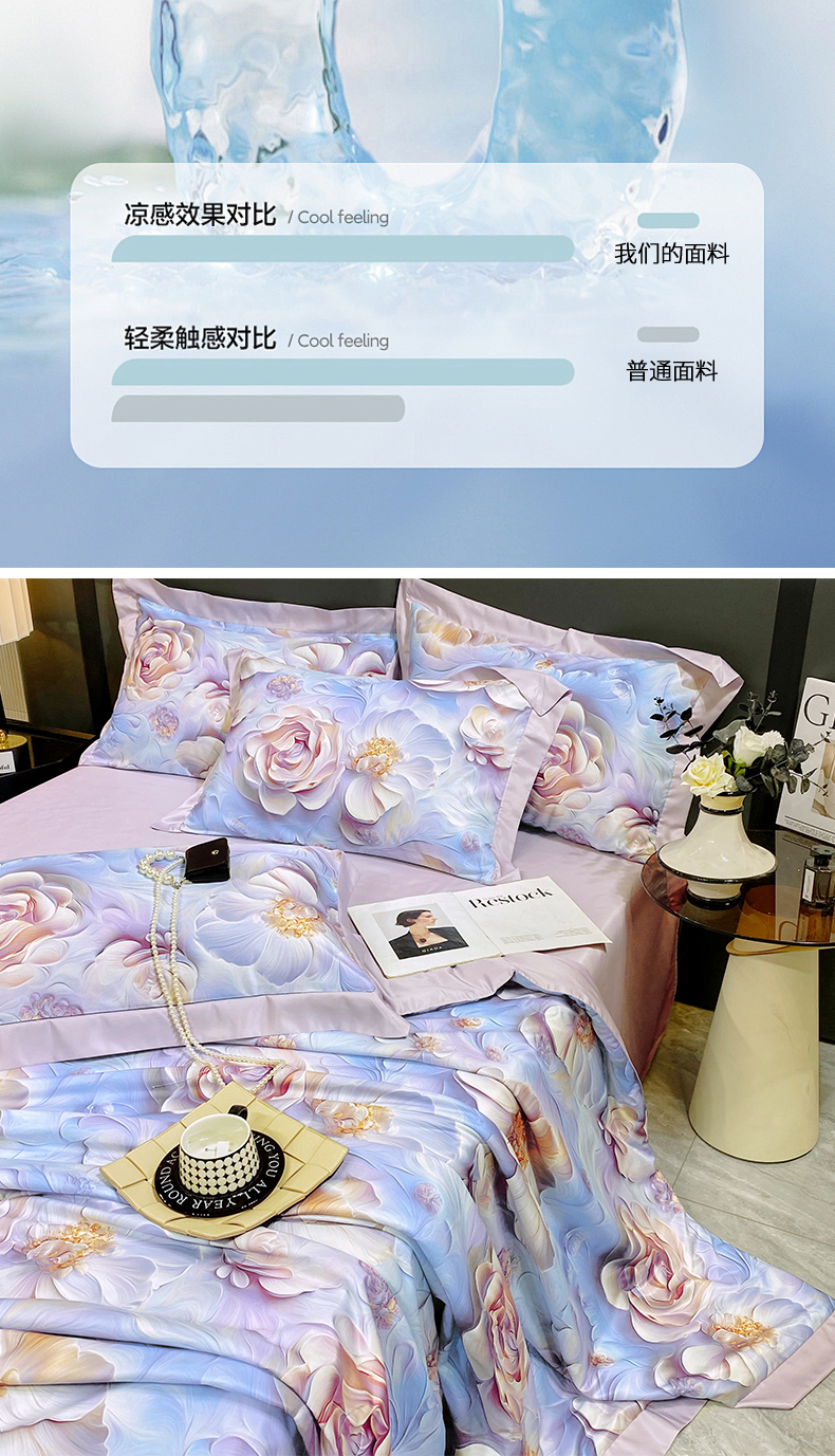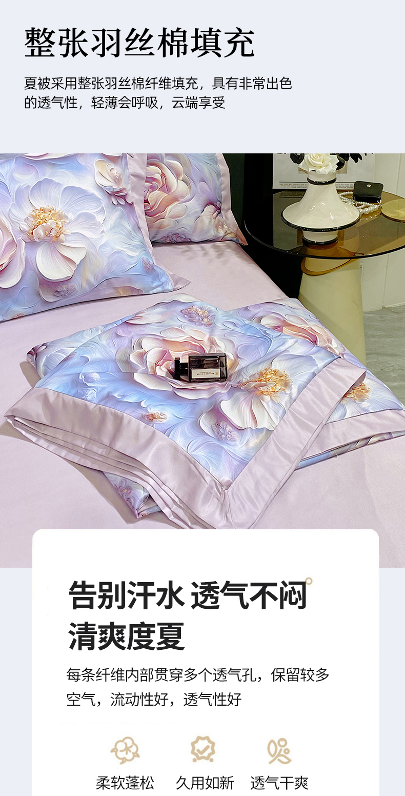 2025新款数码印花凉感冰丝羽丝棉填充夏被四件套