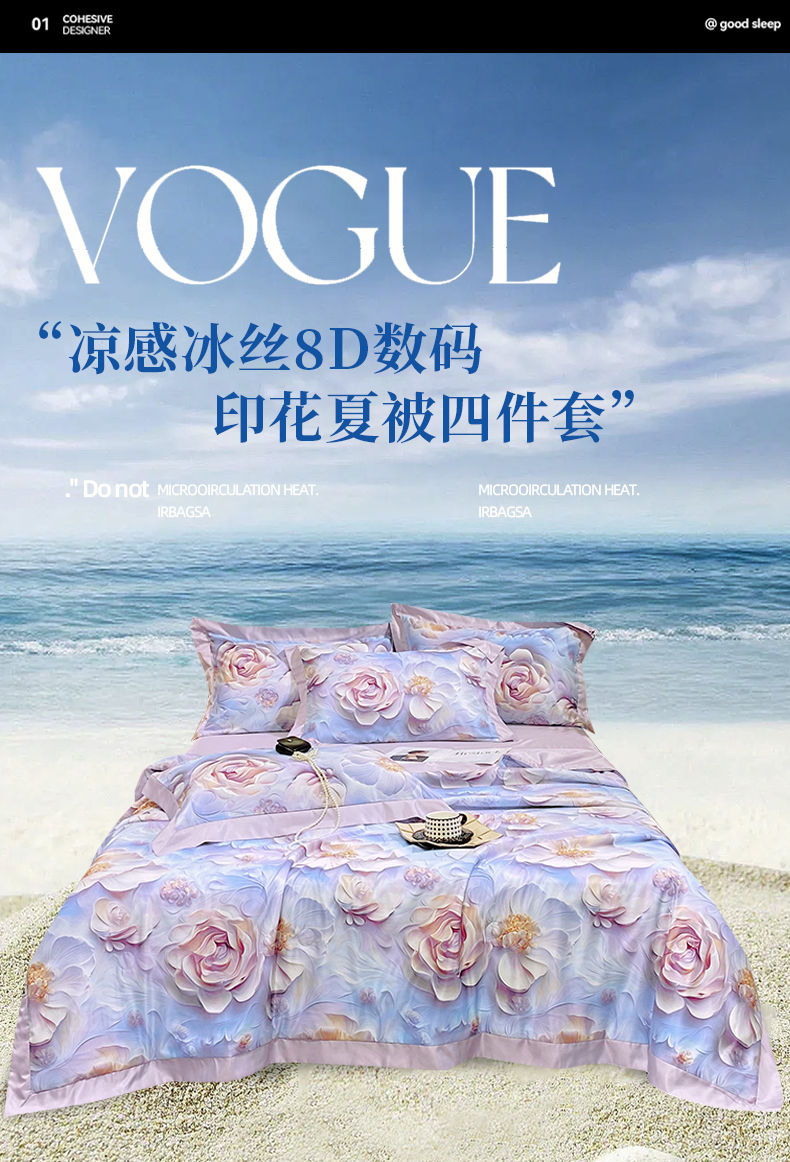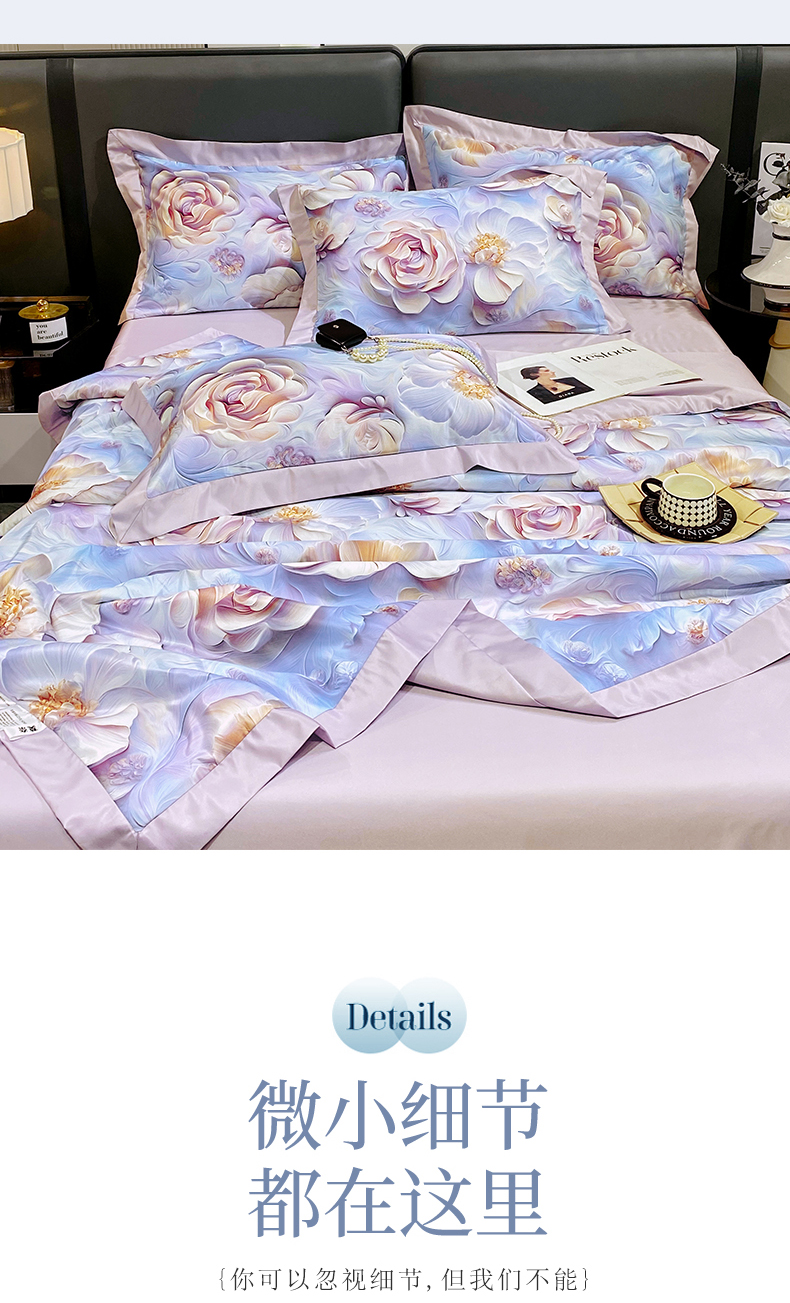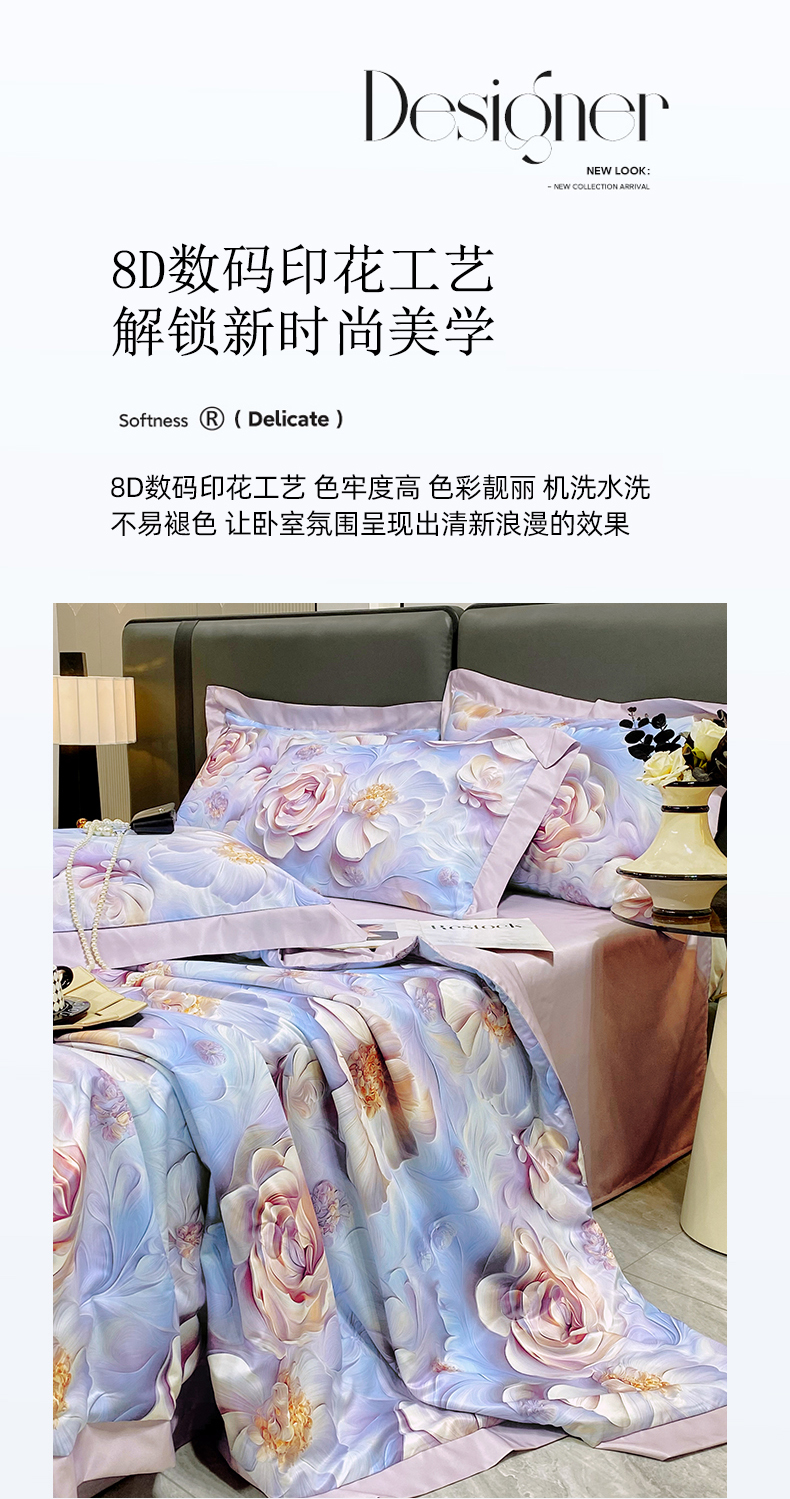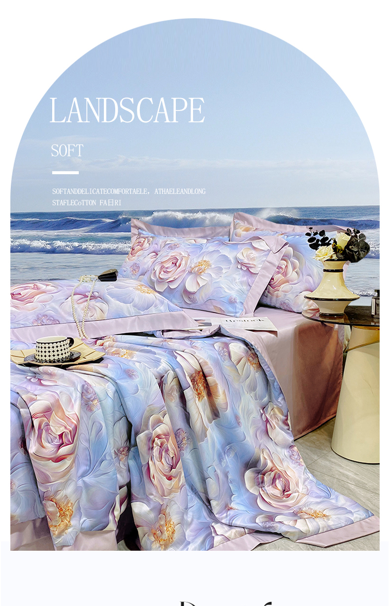 2025新款数码印花凉感冰丝羽丝棉填充夏被四件套