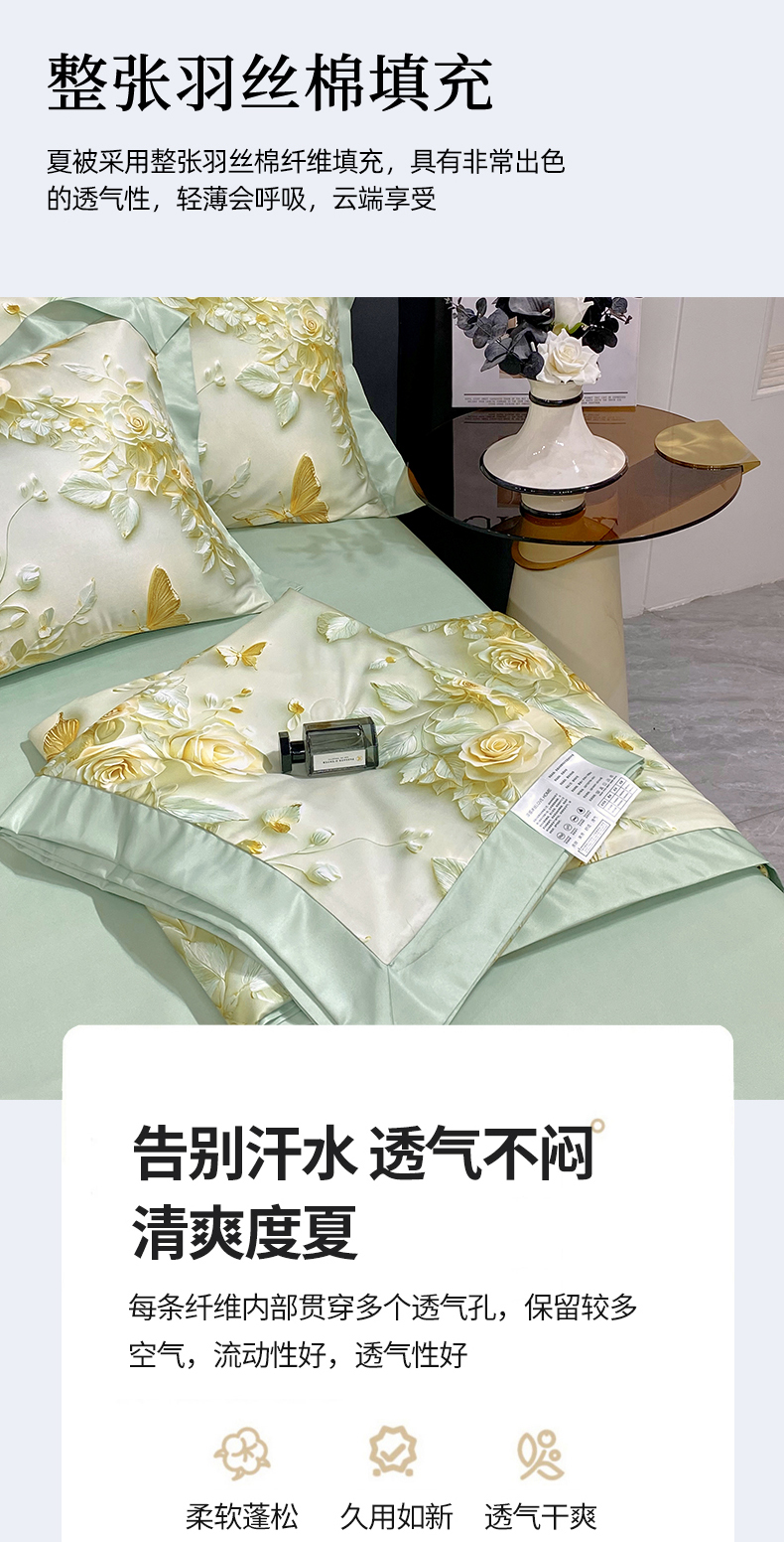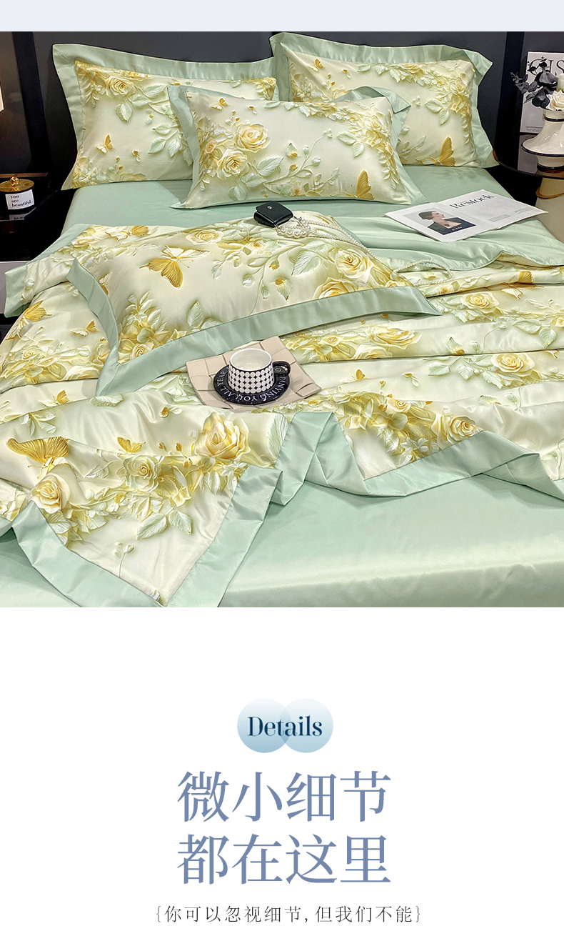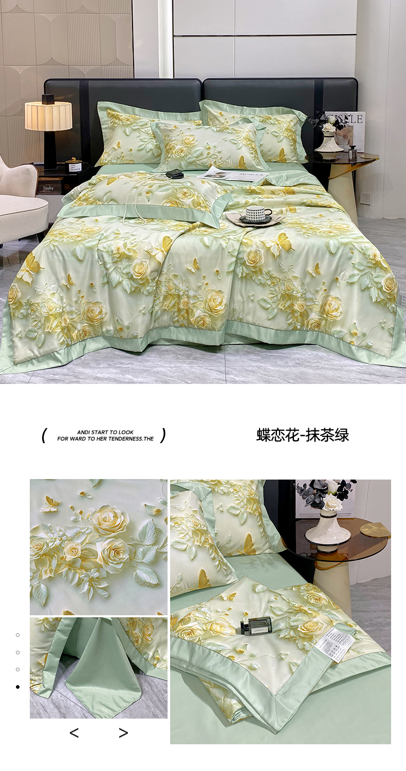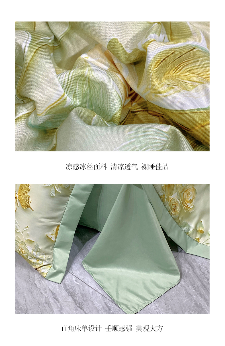 久久红 2025新款数码印花凉感冰丝羽丝棉填充夏被四件套 蝶恋花-抹茶绿