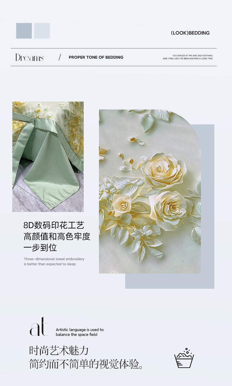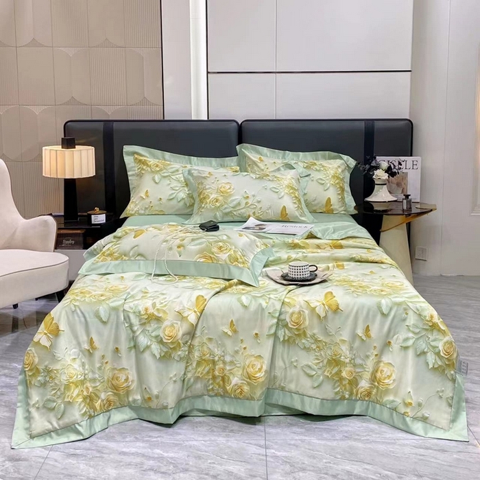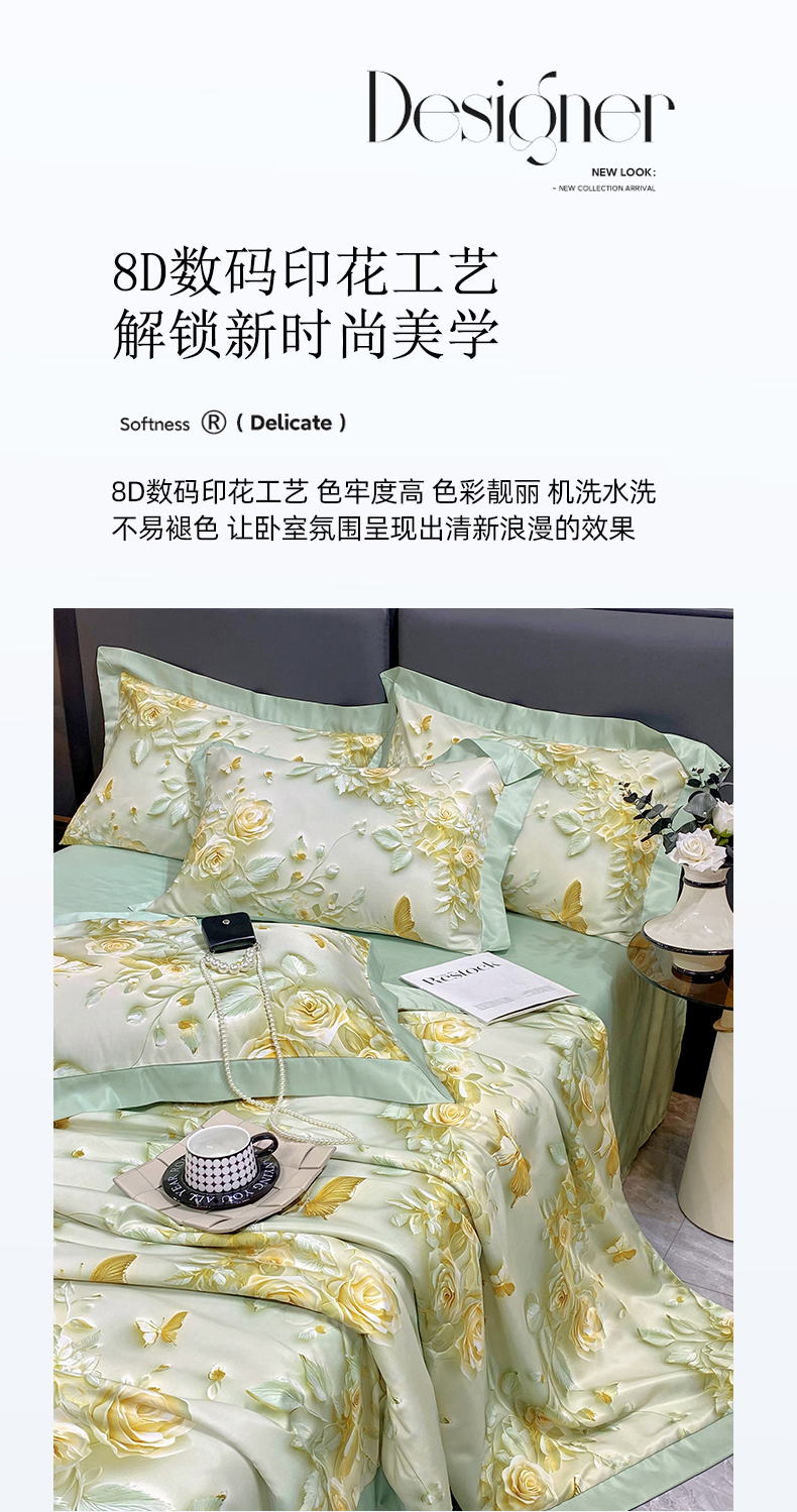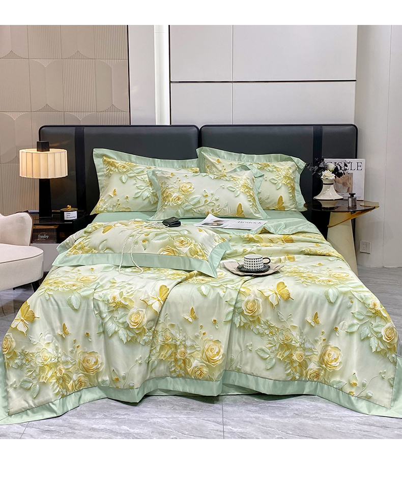 久久红 2025新款数码印花凉感冰丝羽丝棉填充夏被四件套 蝶恋花-抹茶绿