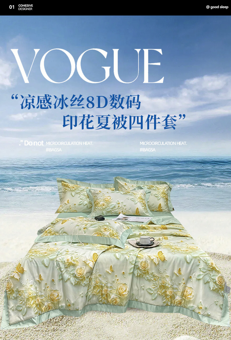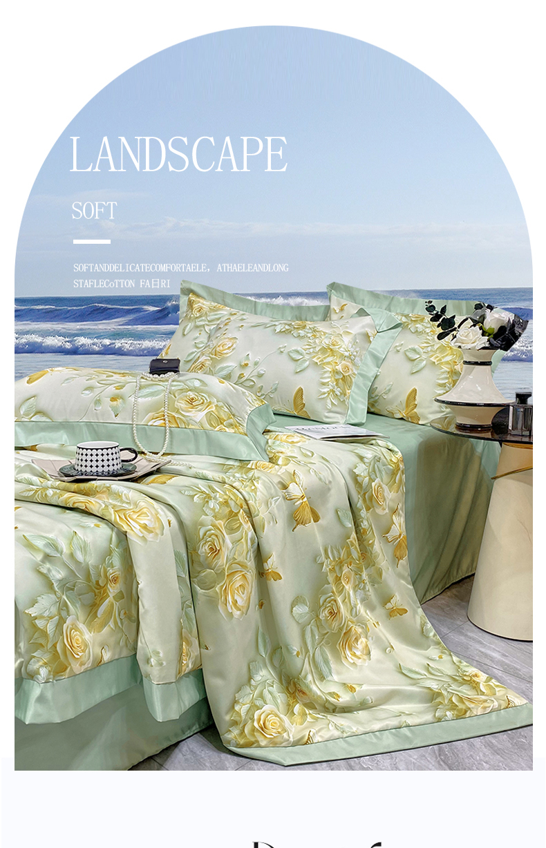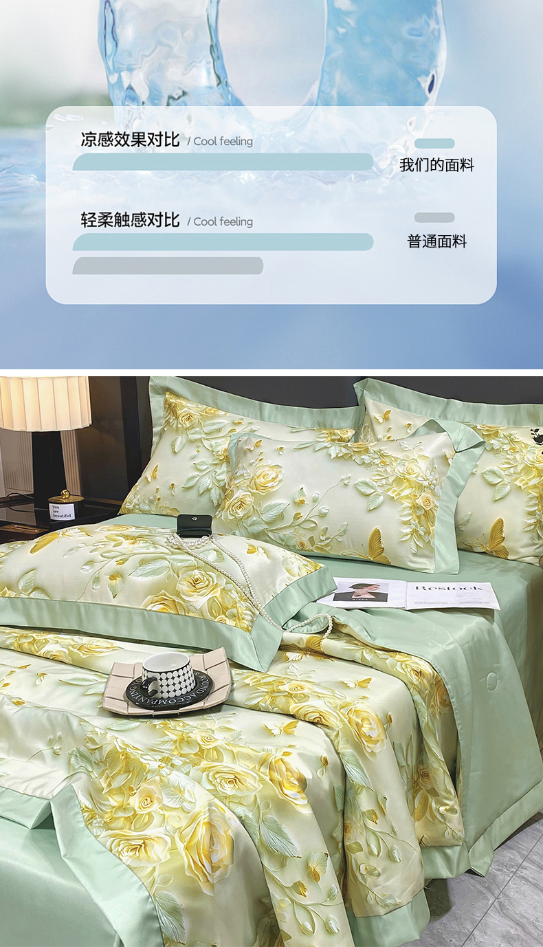 2025新款数码印花凉感冰丝羽丝棉填充夏被四件套
