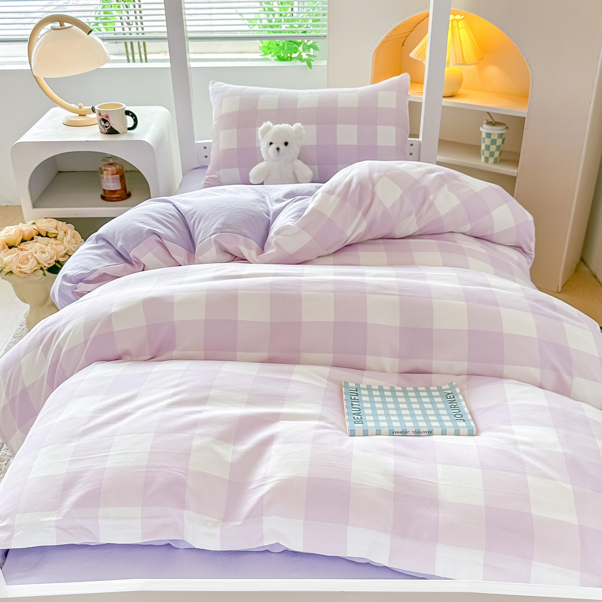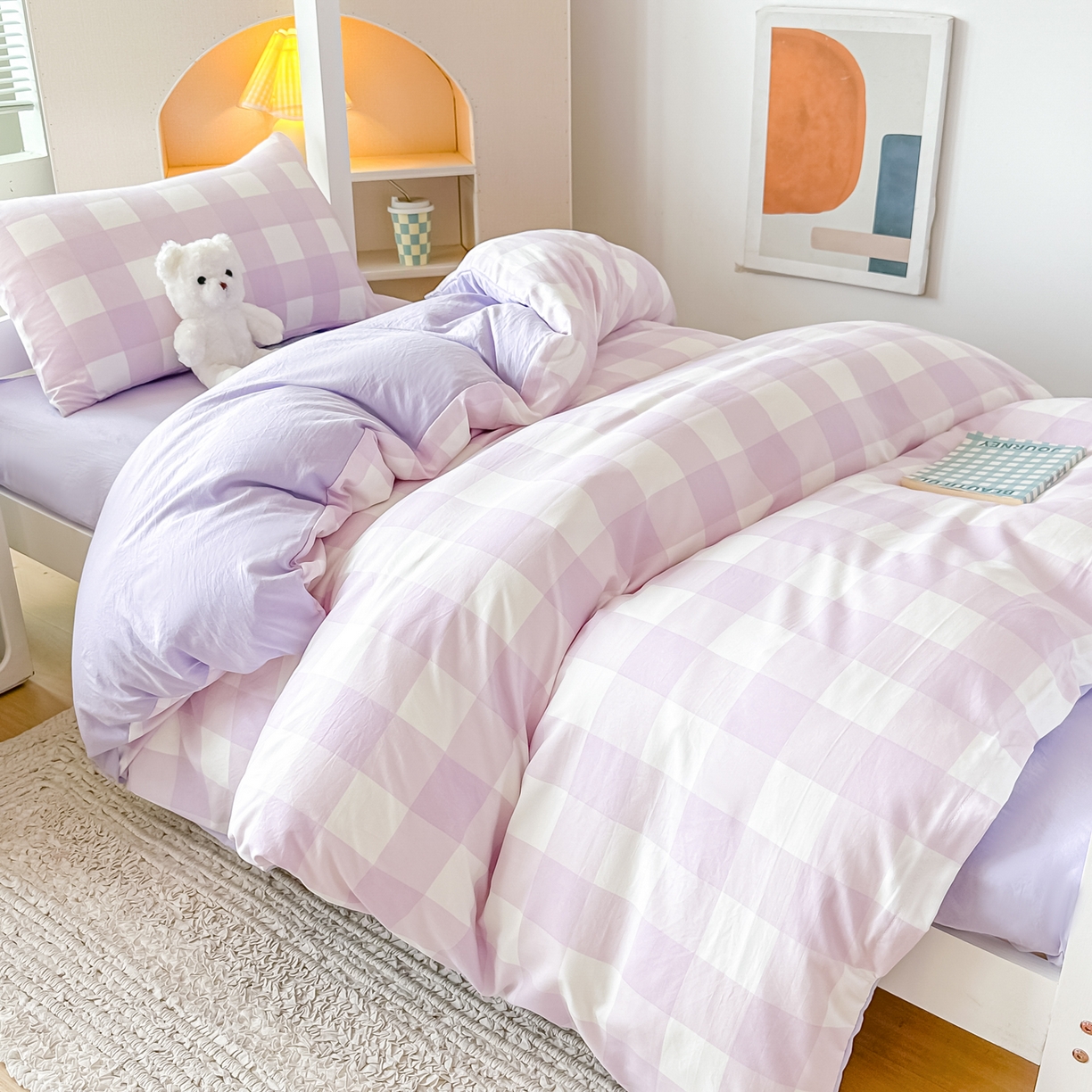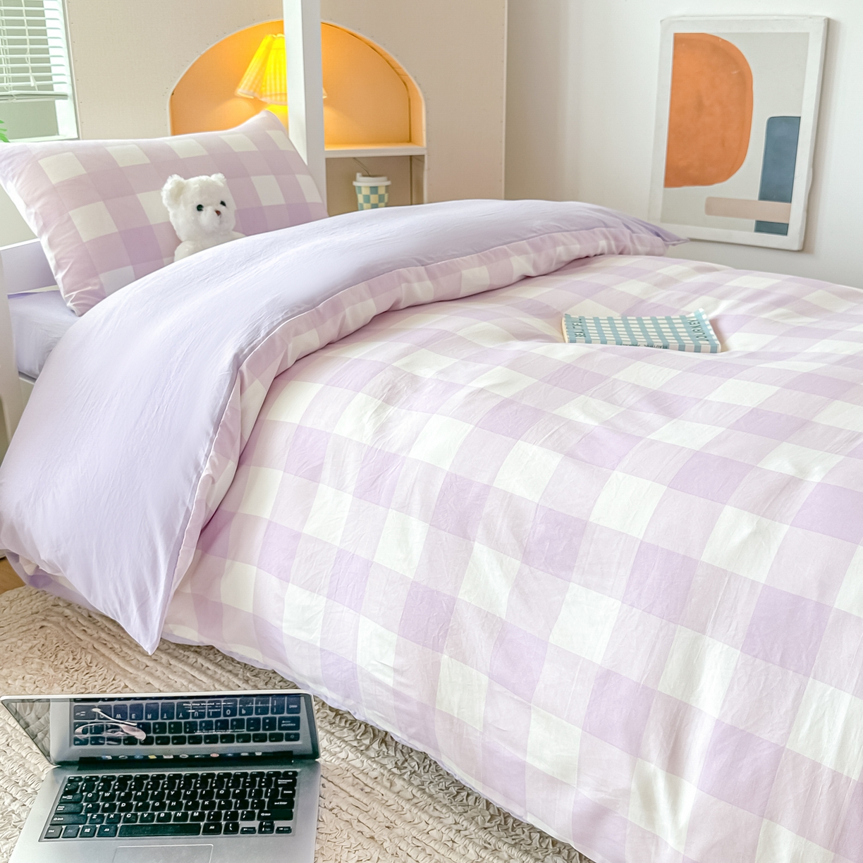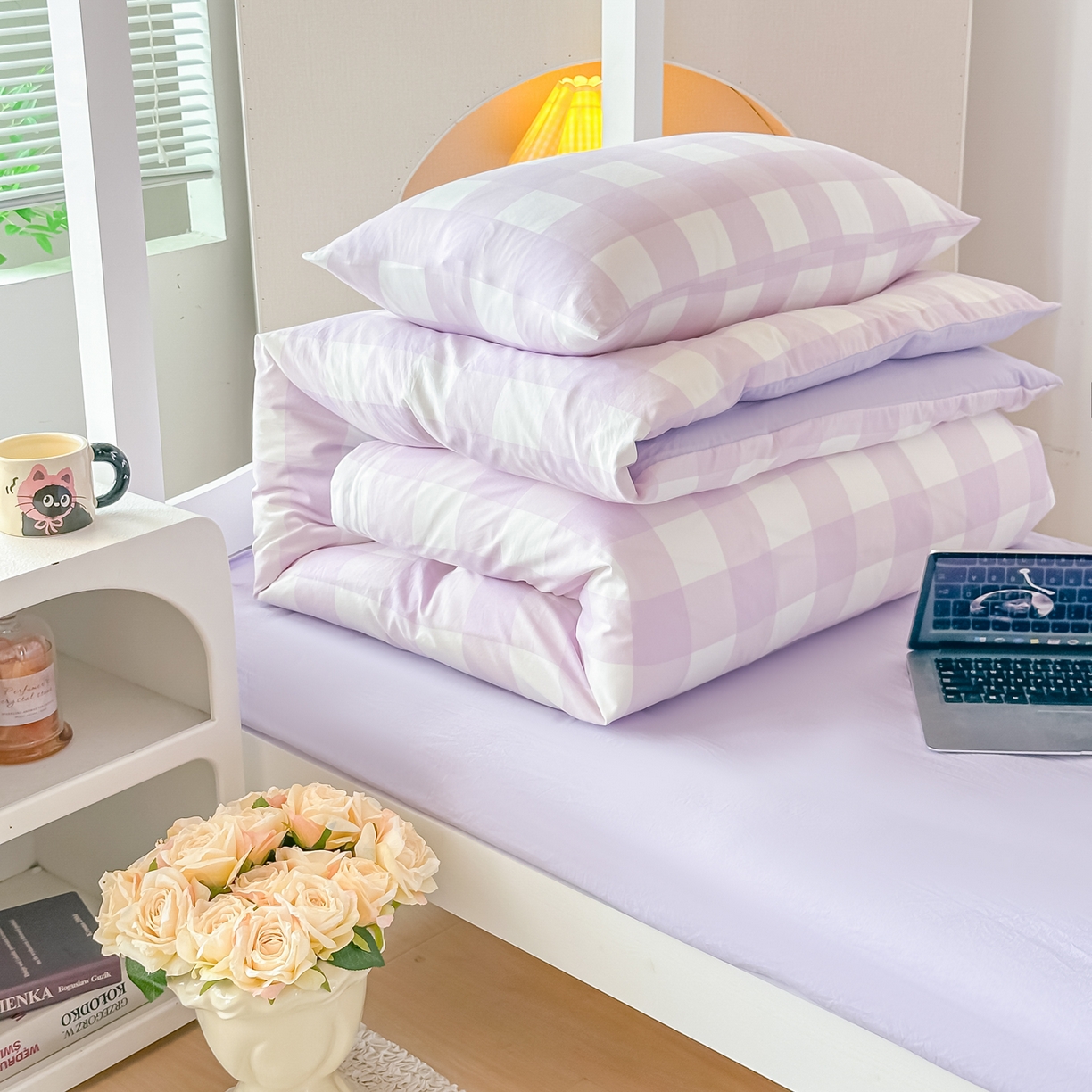久久红 2025新款学生季水洗棉宿舍三件套学生三件套上下铺三件套 浅紫格语