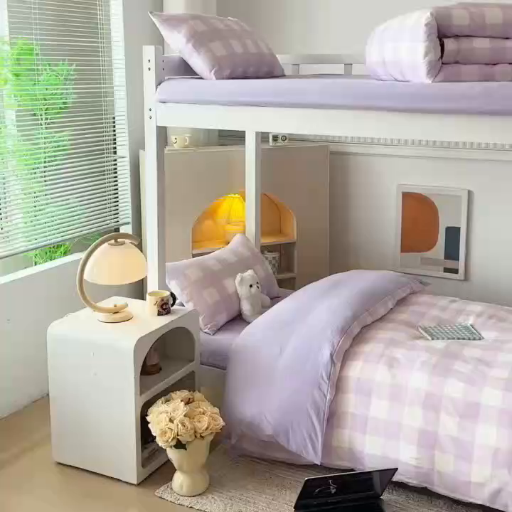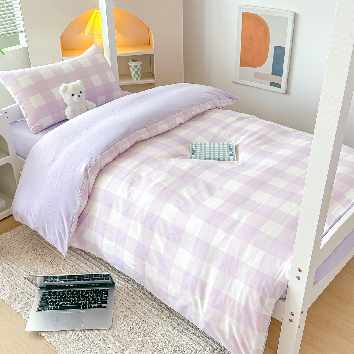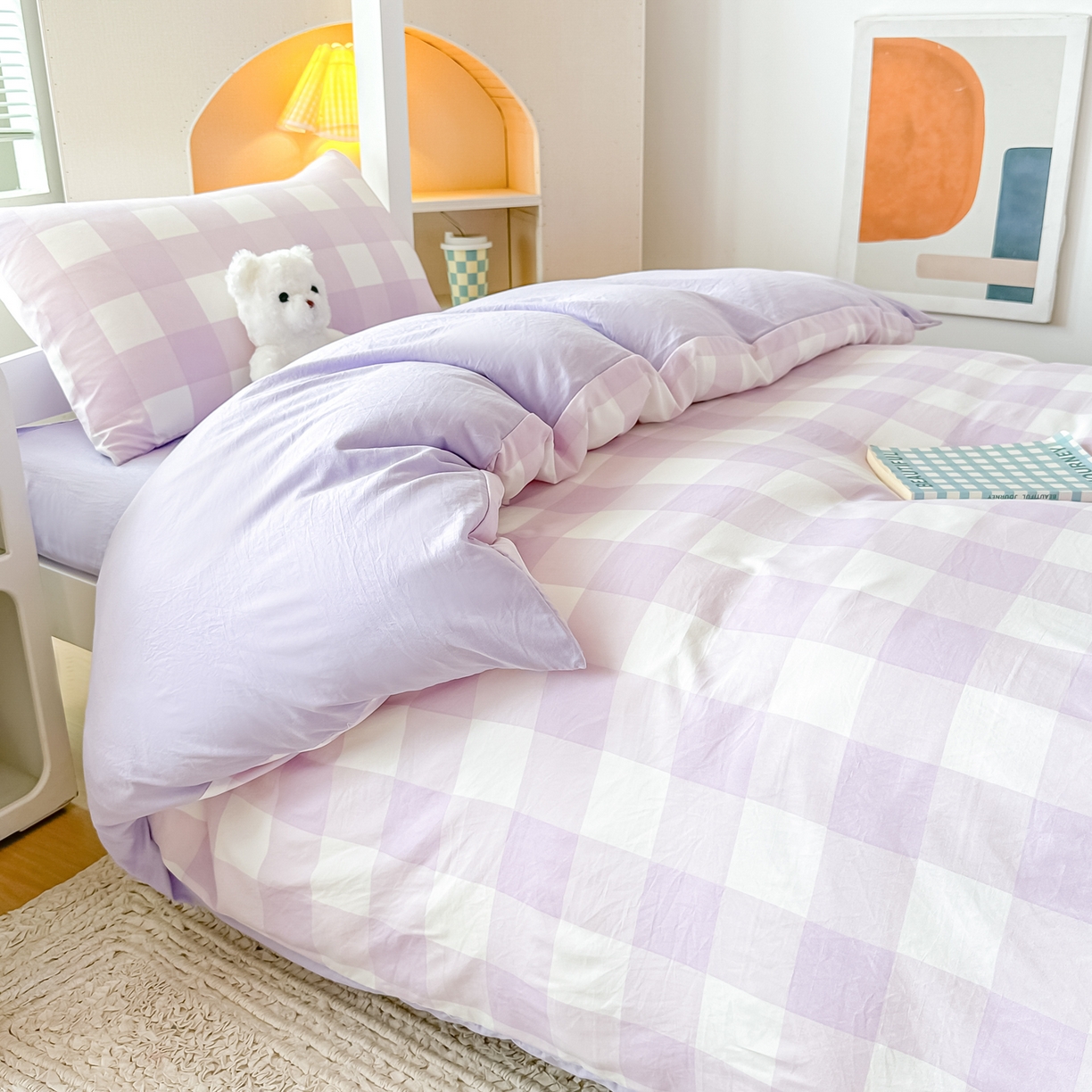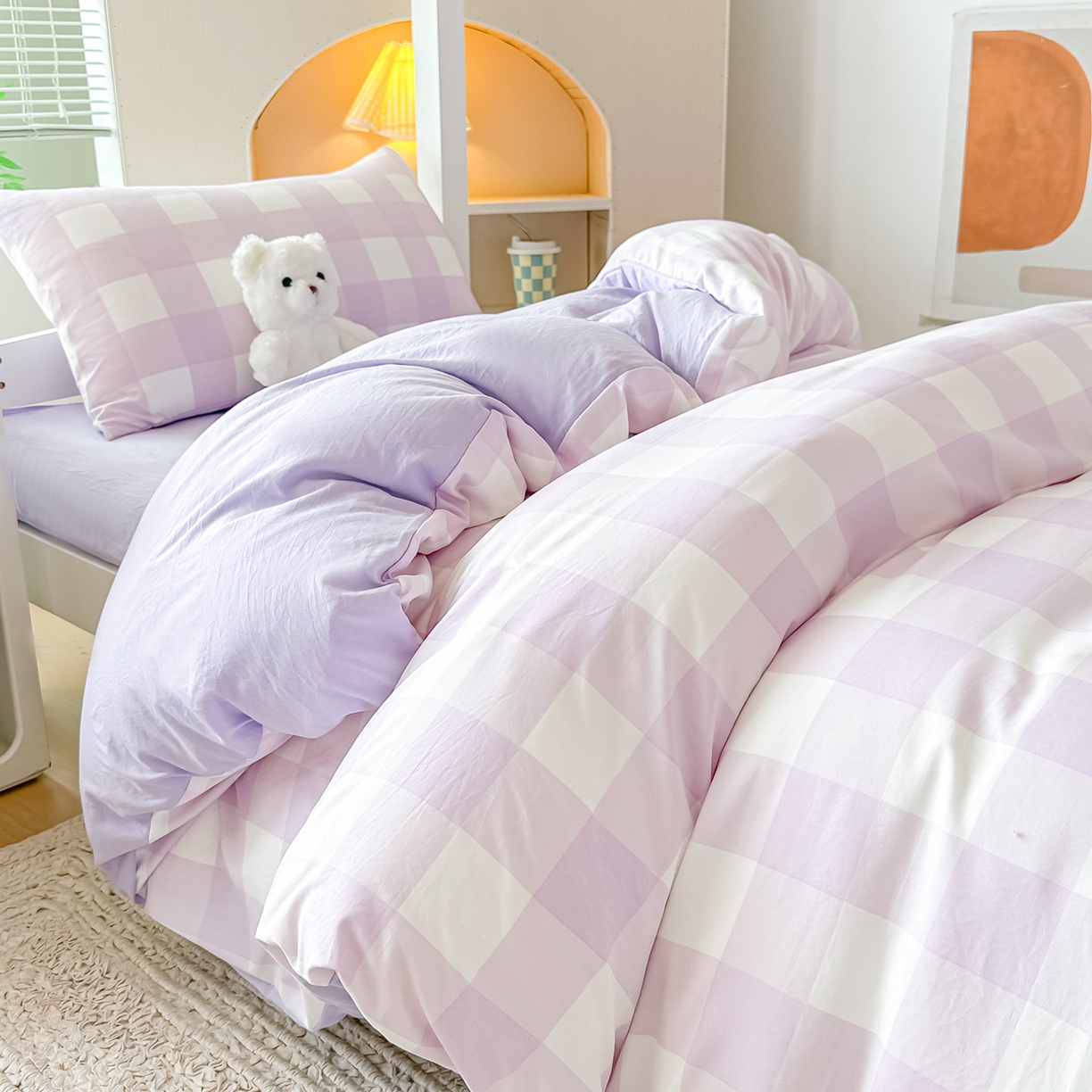 久久红 2025新款学生季水洗棉宿舍三件套学生三件套上下铺三件套 浅紫格语