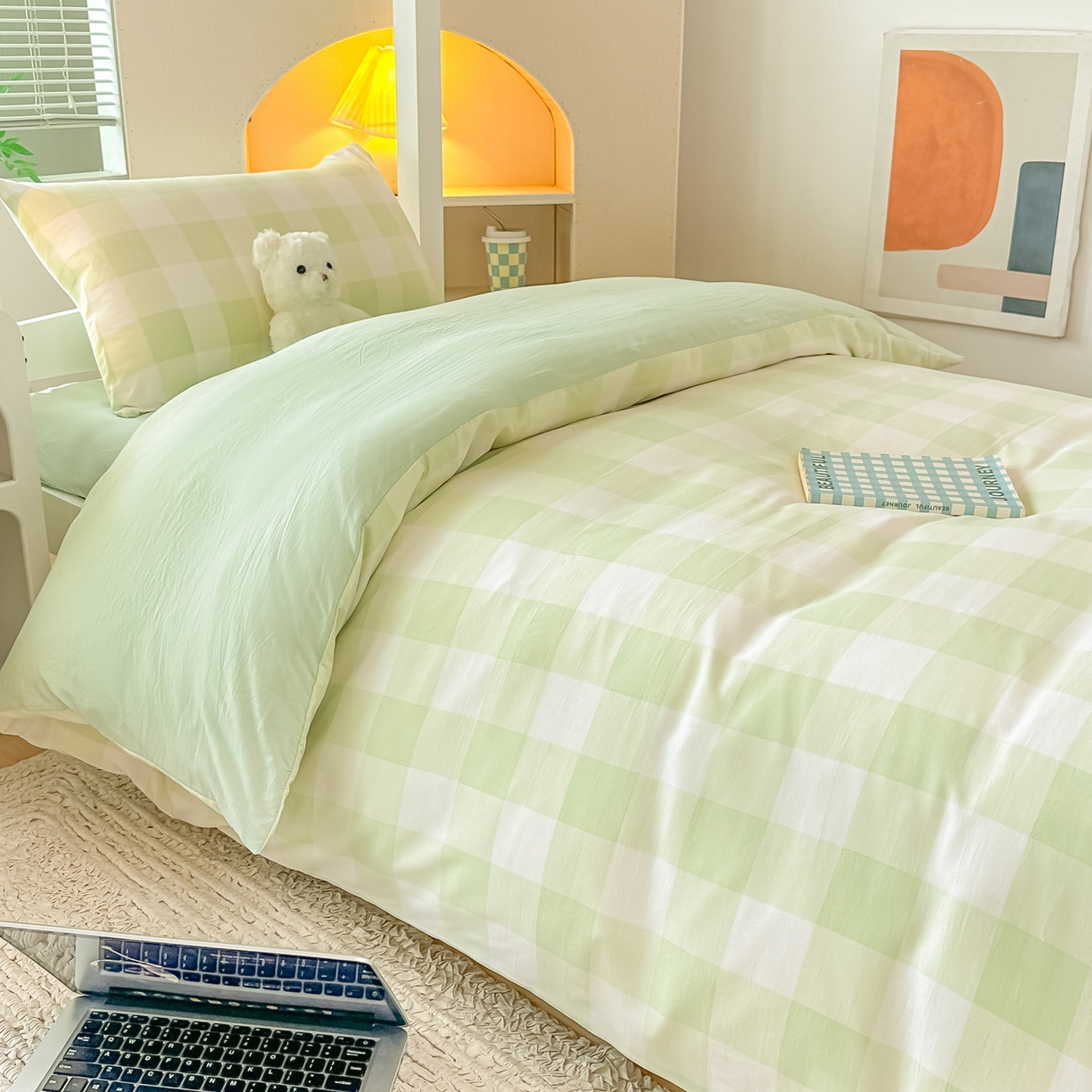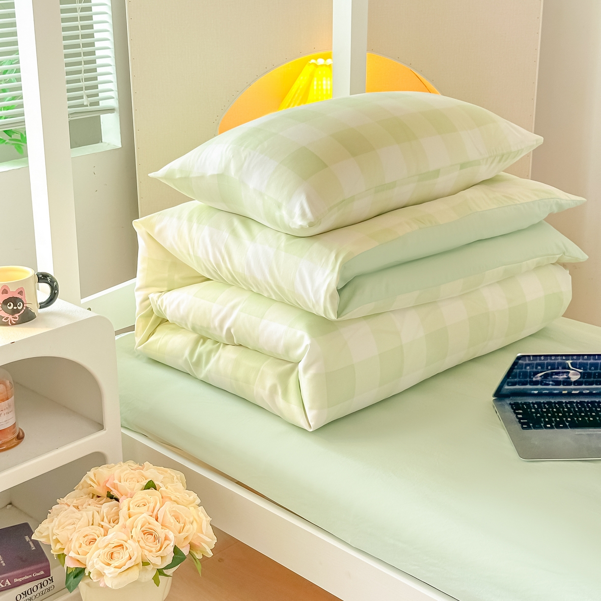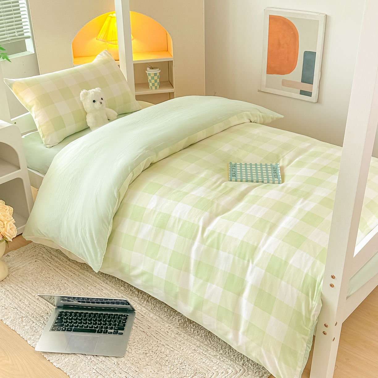 久久红 2025新款学生季水洗棉宿舍三件套学生三件套上下铺三件套 雾绿格影