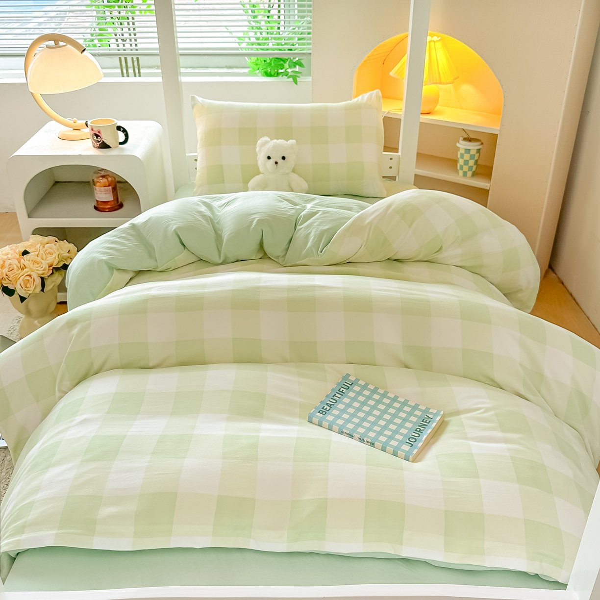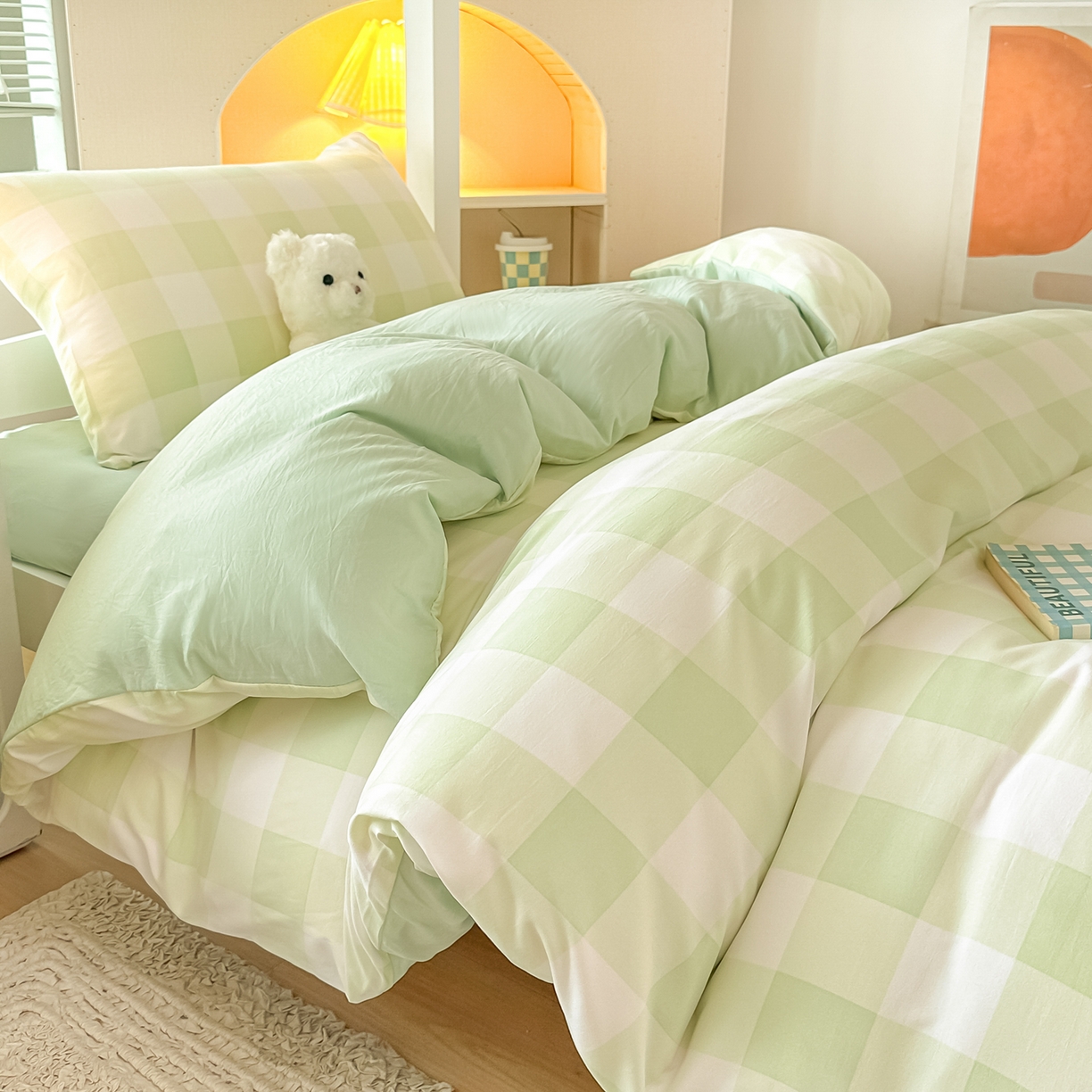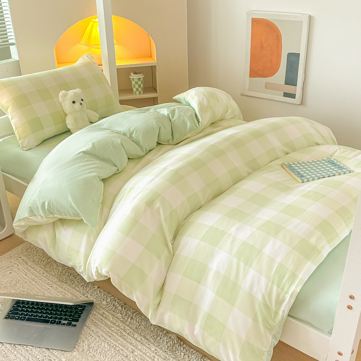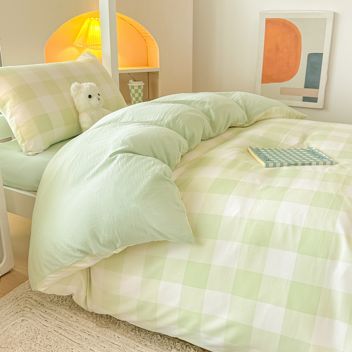 久久红 2025新款学生季水洗棉宿舍三件套学生三件套上下铺三件套 雾绿格影