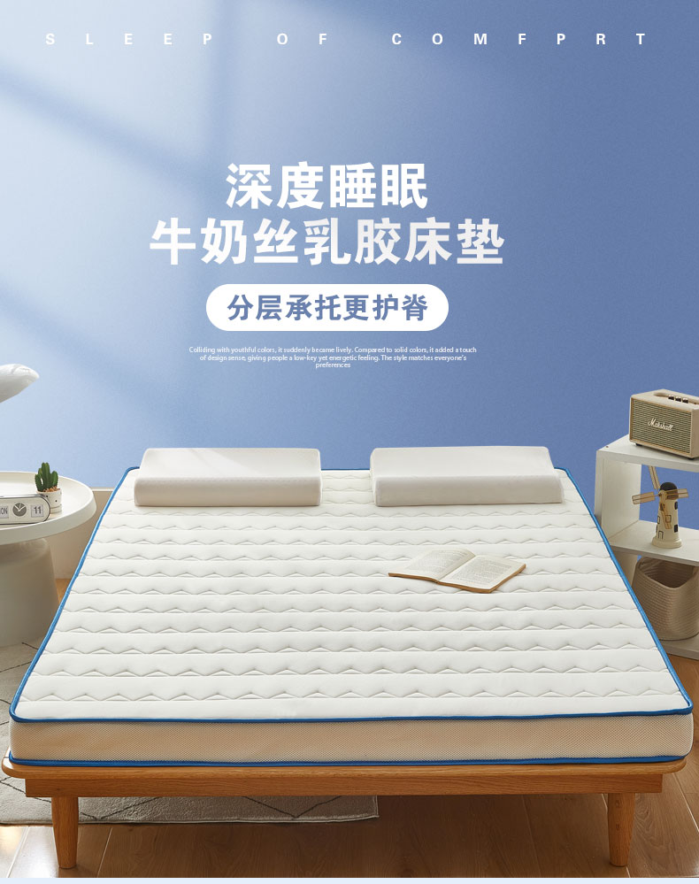久久红 2025新款A类牛奶丝乳胶记忆棉海绵床垫 立体款-烟雾蓝-厚度9cm