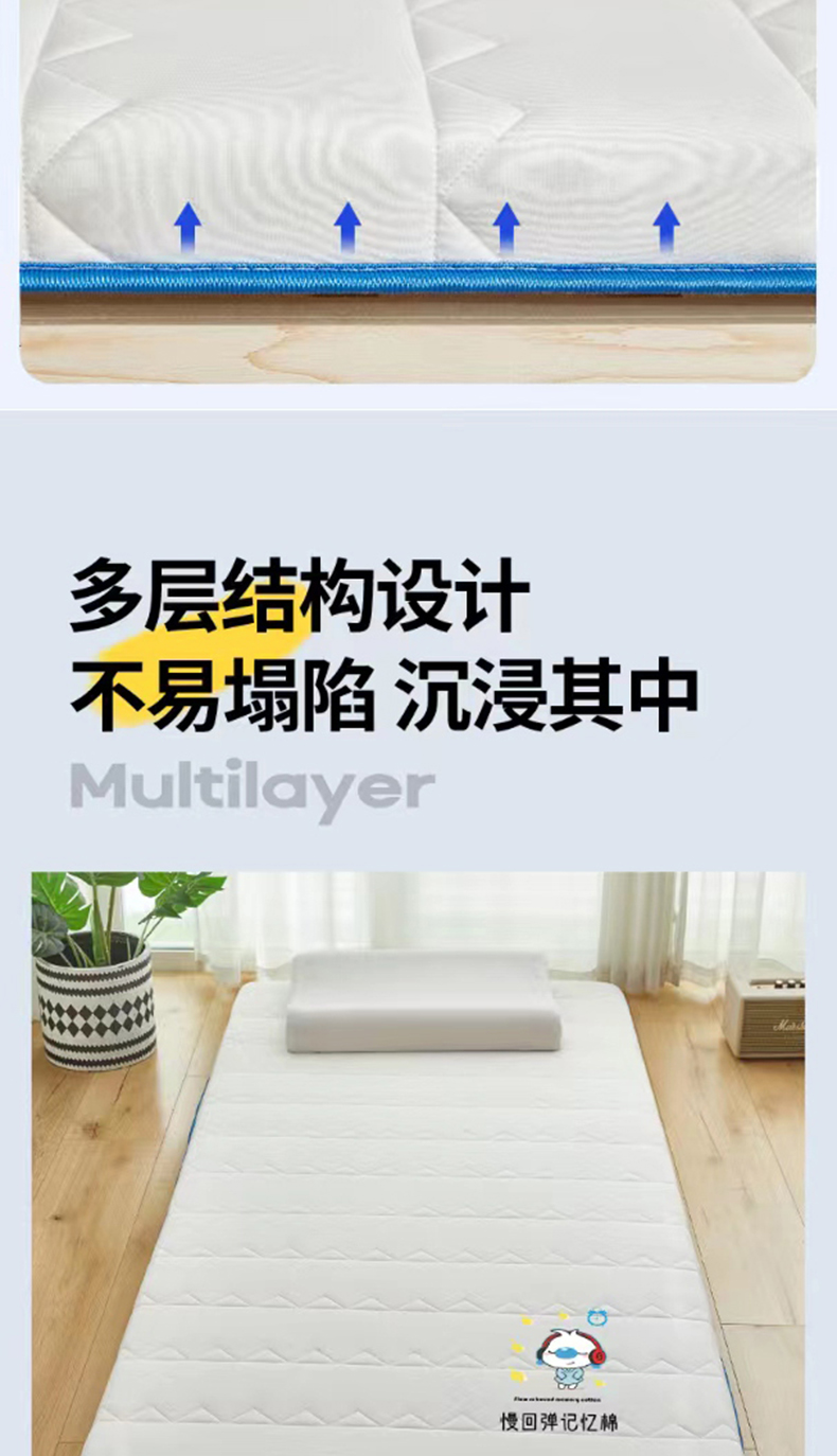 久久红 2025新款针织慢回弹记忆棉床垫学生款 灰色10cm