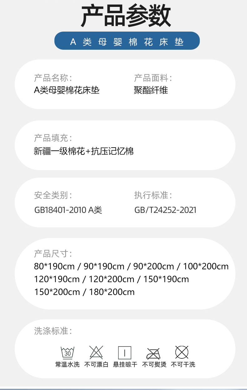 2025新款A类母婴针织新疆棉花床垫-厚度约为10cm