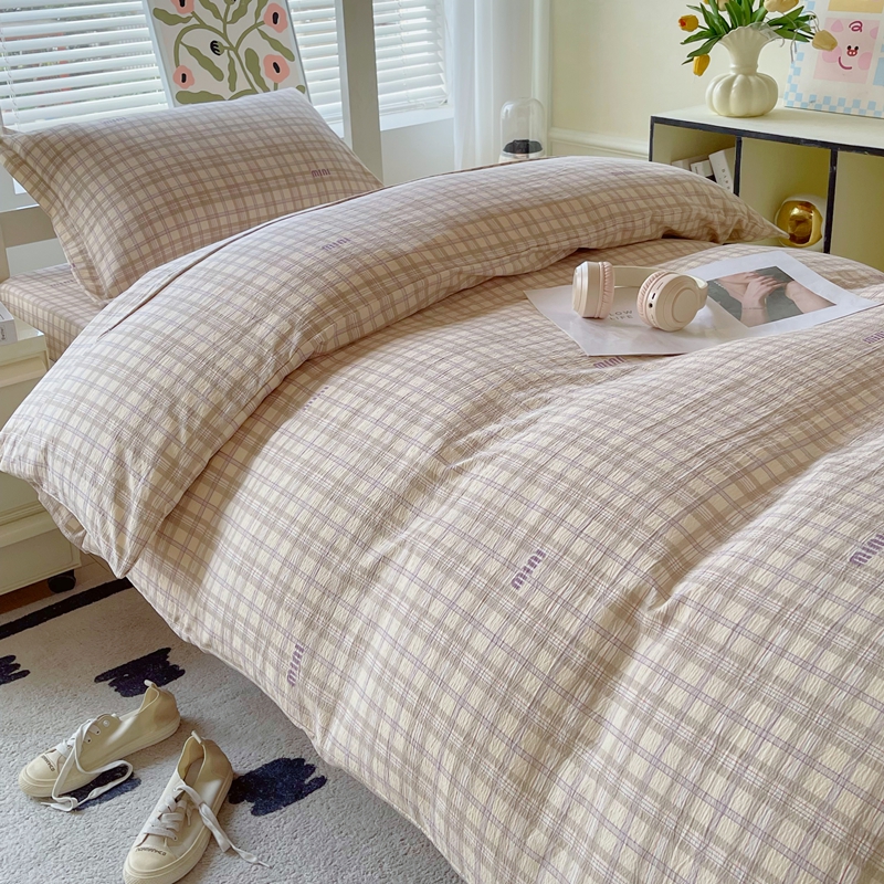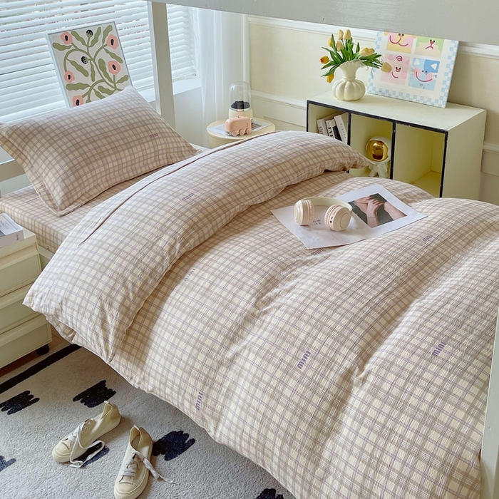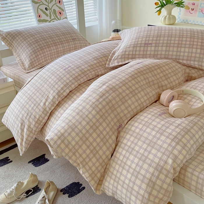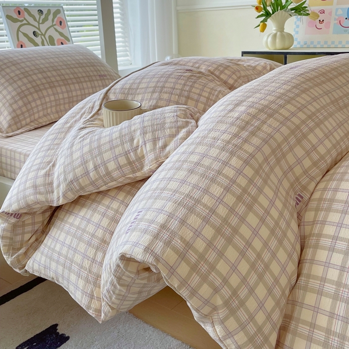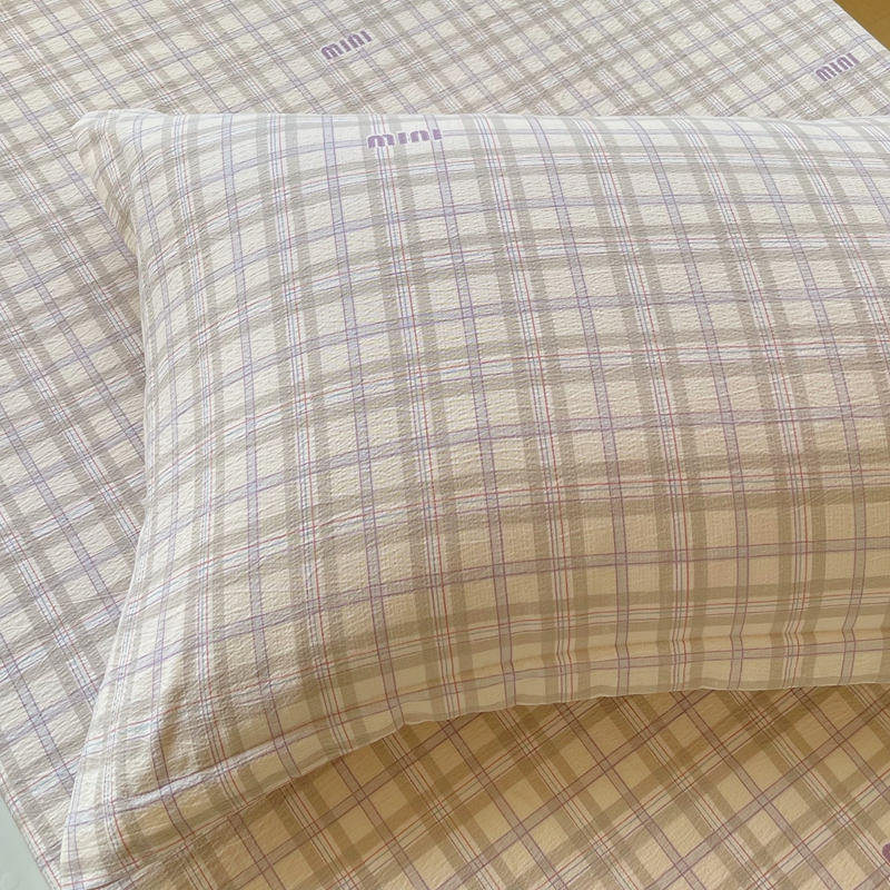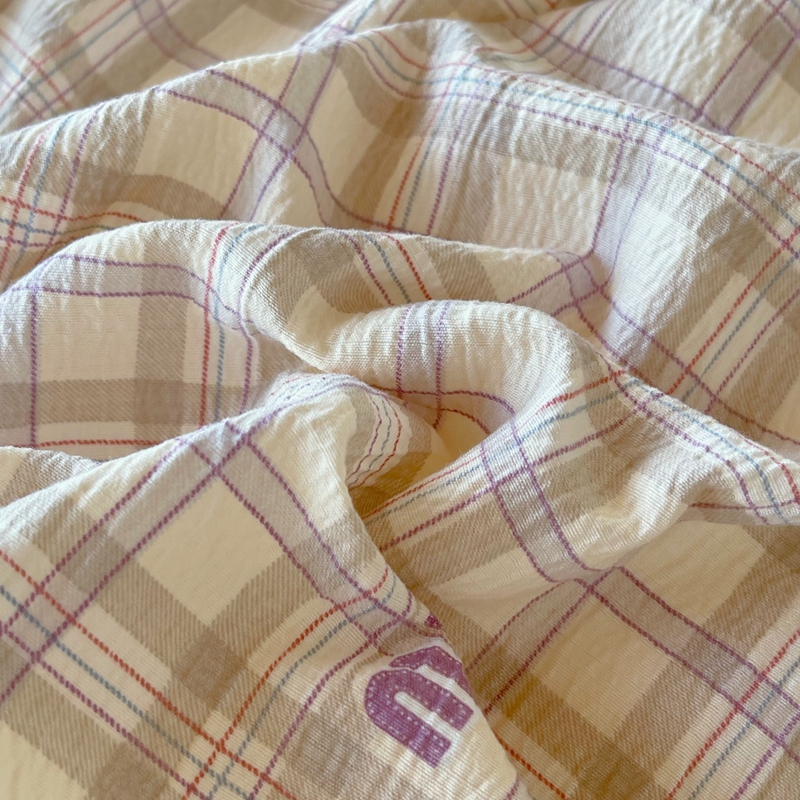 久久红 2025新款活性皱皱纱三件套 迷你格-米
