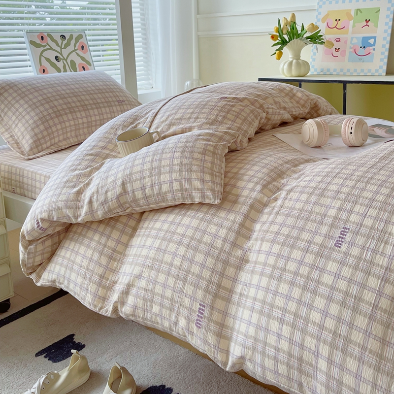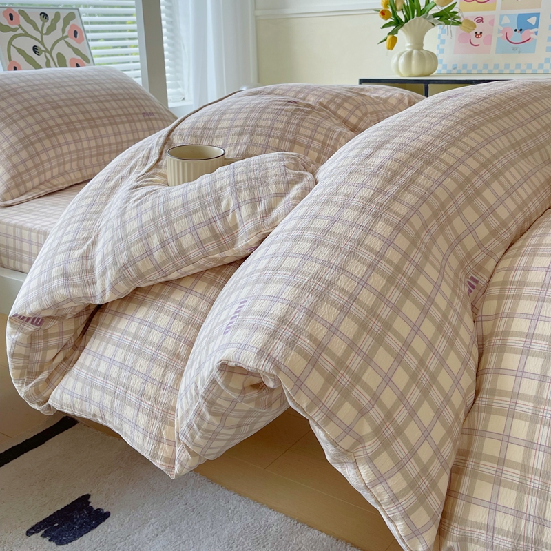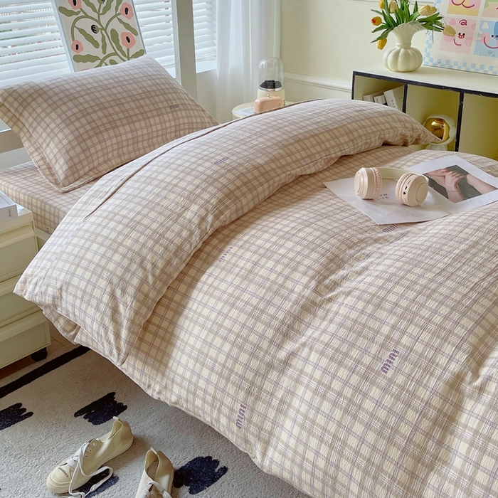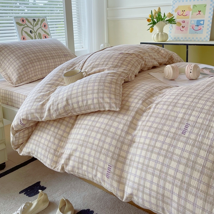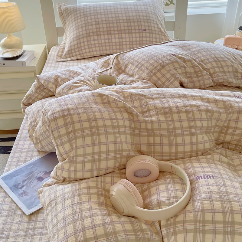 久久红 2025新款活性皱皱纱三件套 迷你格-米